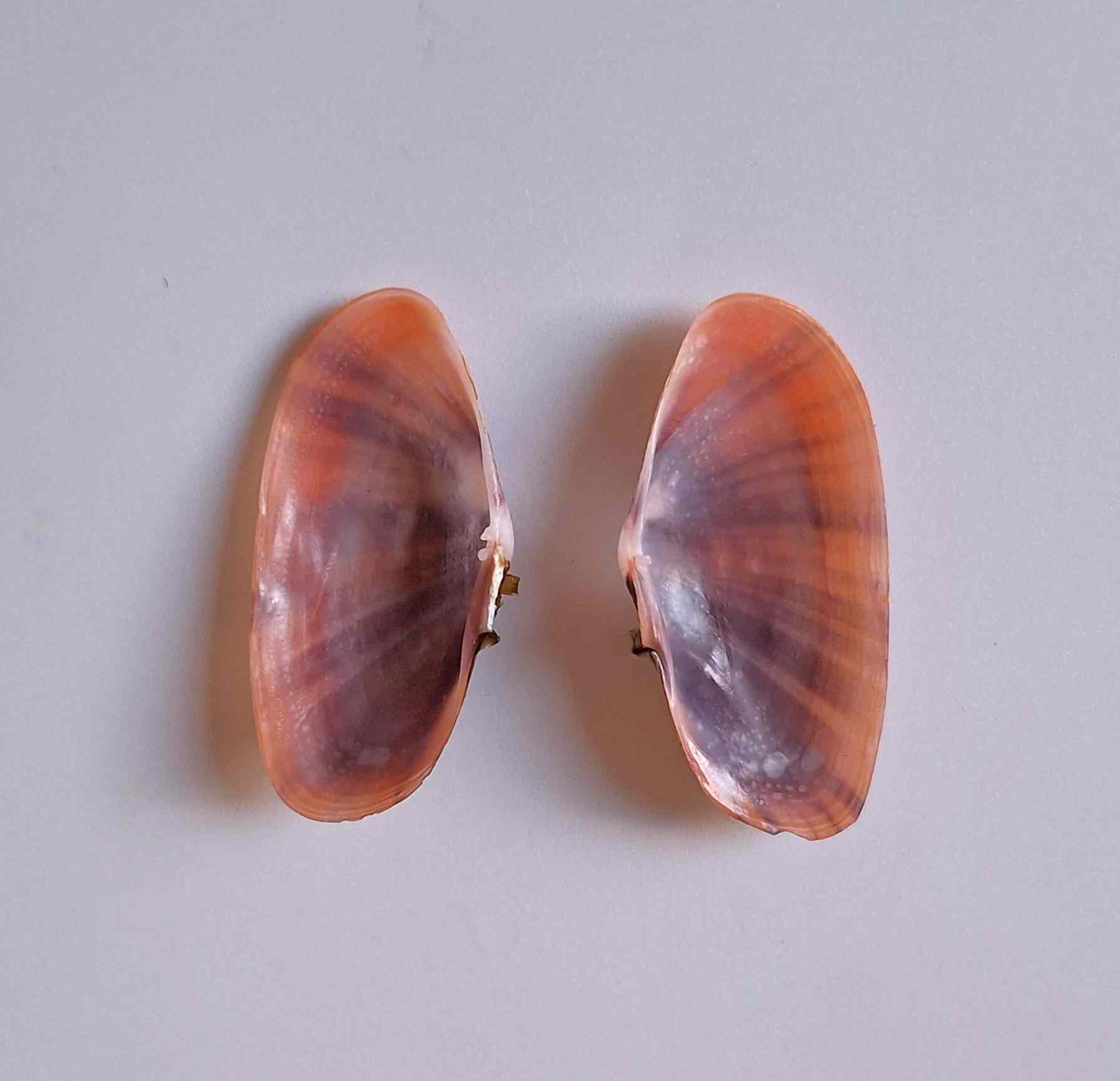 • moc krásný exemplář, fialovo-oranžová barva, drobné štípnutí, patří do family PSAMMOBIIDAE (beautiful specimen, purple-orange color, minor chip)