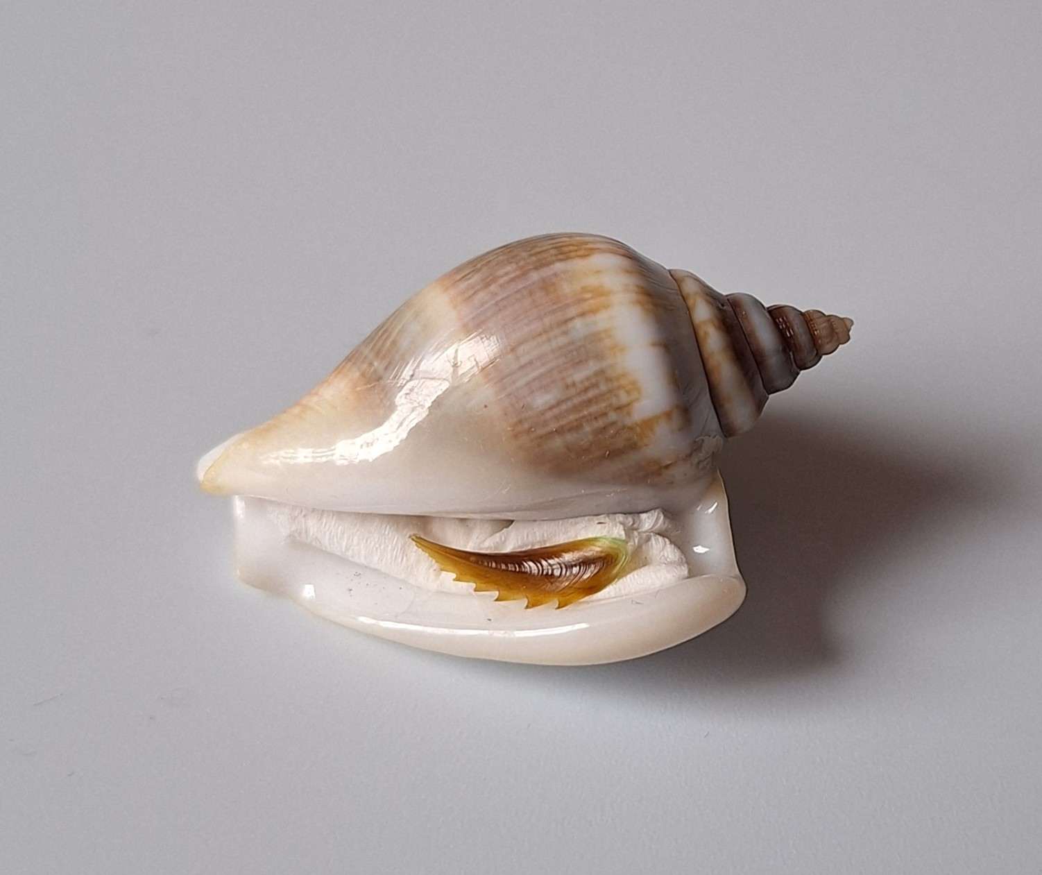 • nádherný vzácný kus s víčkem, krásná barva a vzor, vyloveno v hloubce 5 až 10 metrů (beautiful rare piece with operculum, beautiful color and pattern, taken by diving at a depth of 5 to 10 meters)