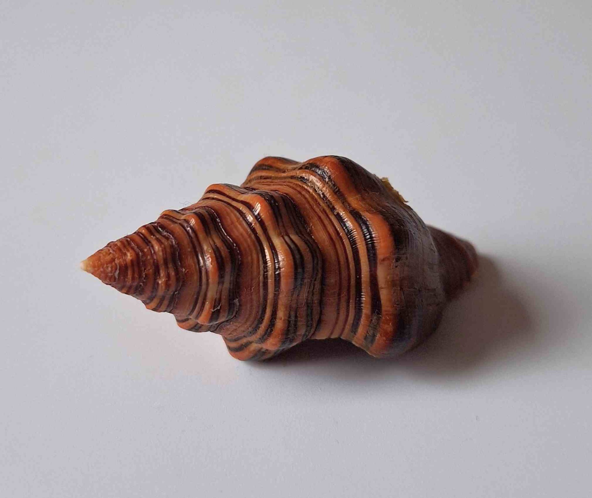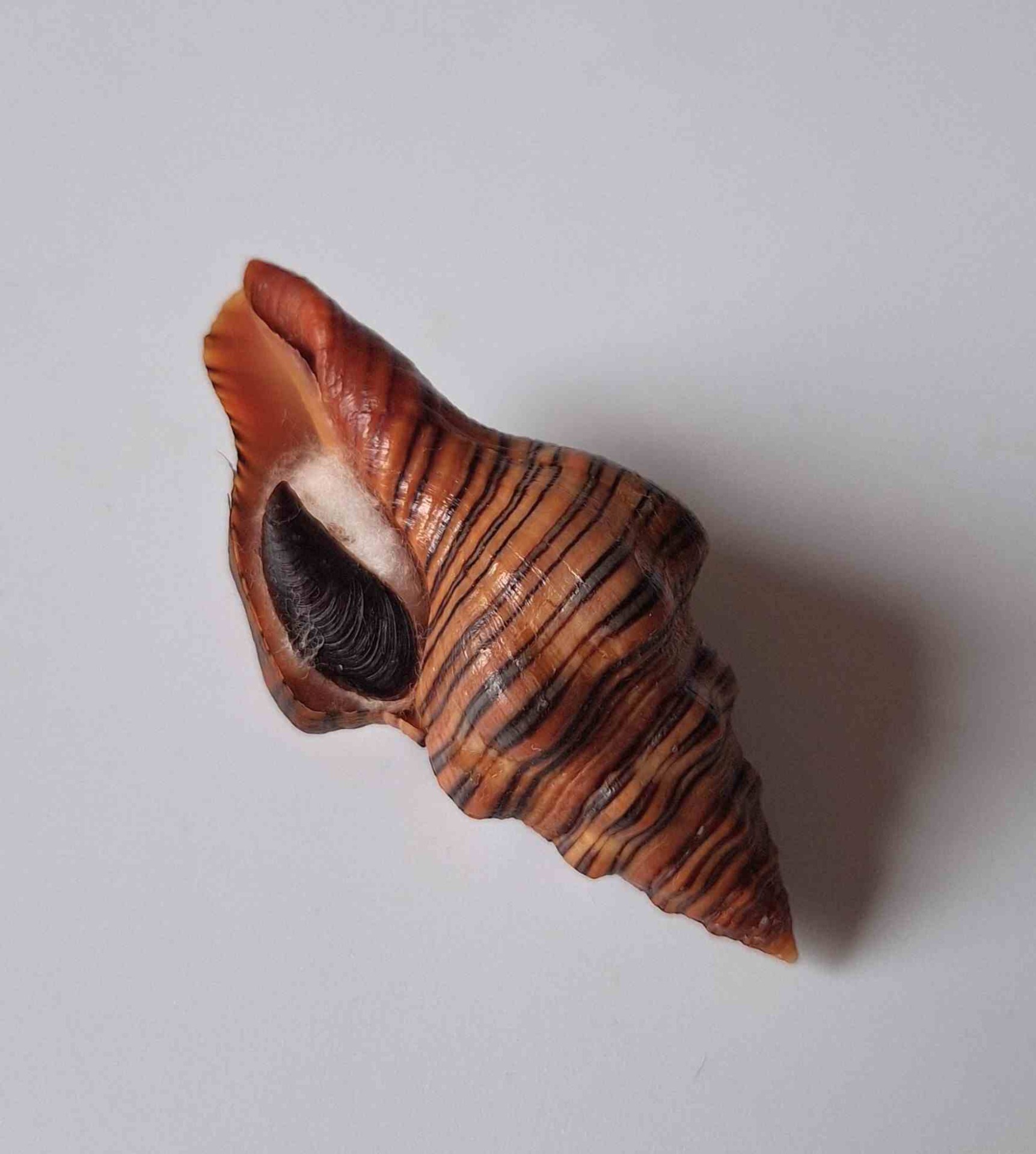 • moc hezký kus s víčkem, nádherně vybarvený, moc hezký vzor, dvě jizvy u špičky (very nice piece with operculum, beautifully colored, very nice pattern, two chips near the apex)