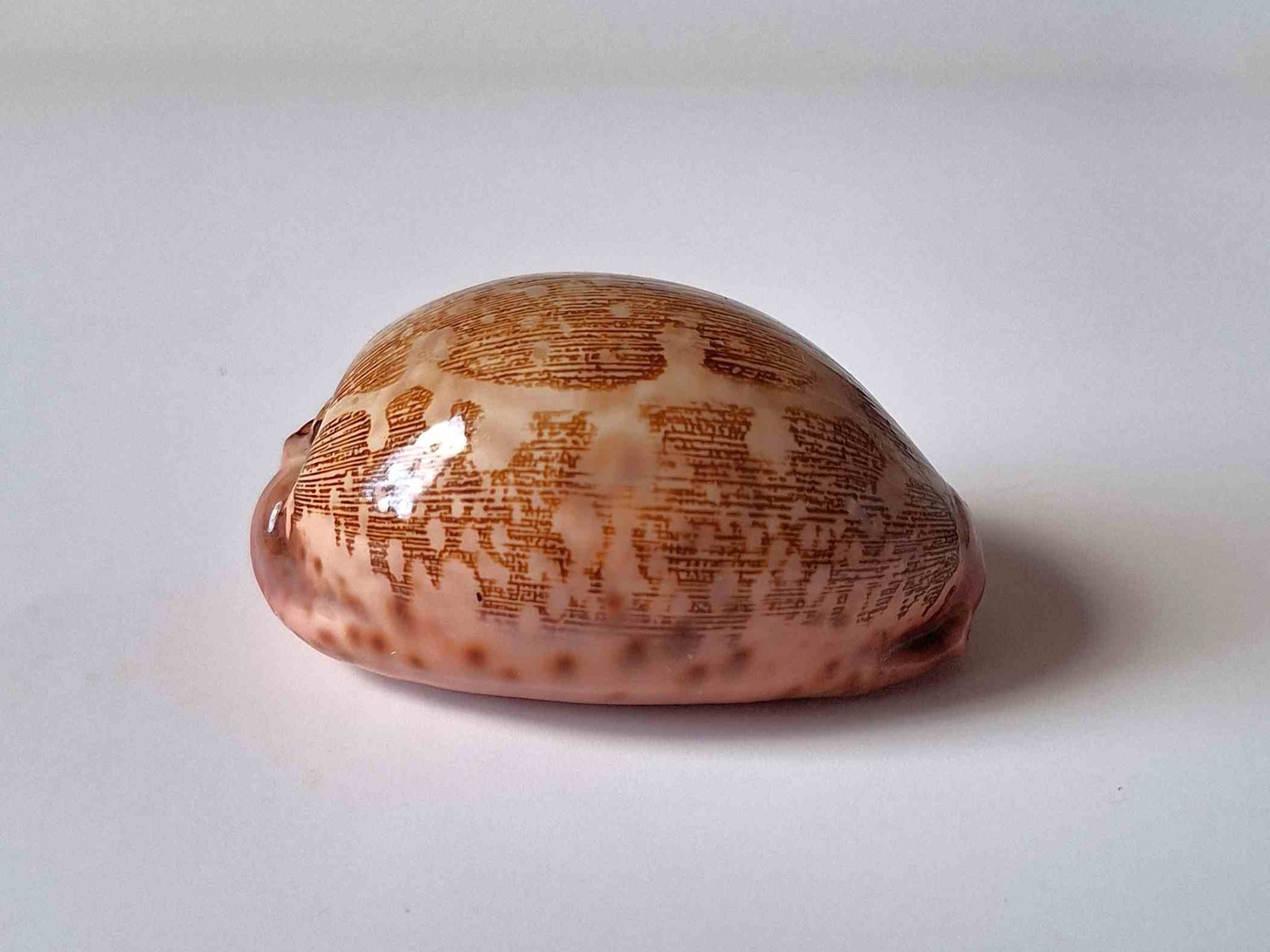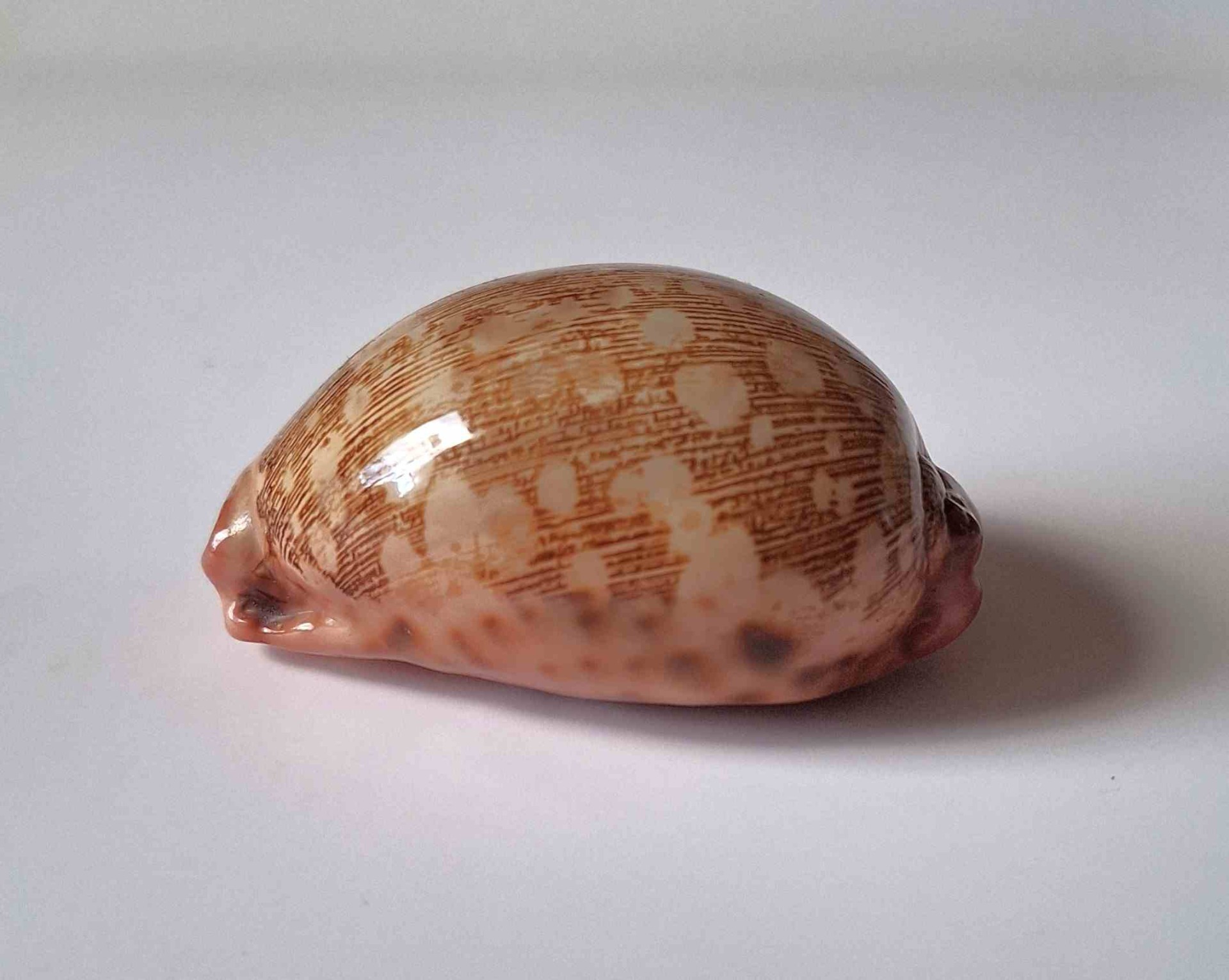 • krásný barevný kus, pěkný vzor, na spodní straně narůžovělý, na spodní straně drobná zrnka písku, vyloveno v hloubce 5 metrů (beautiful colored piece, nice pattern, pinkish on base, little grains of sand on base, taken by diving at a depth of 5 meters)