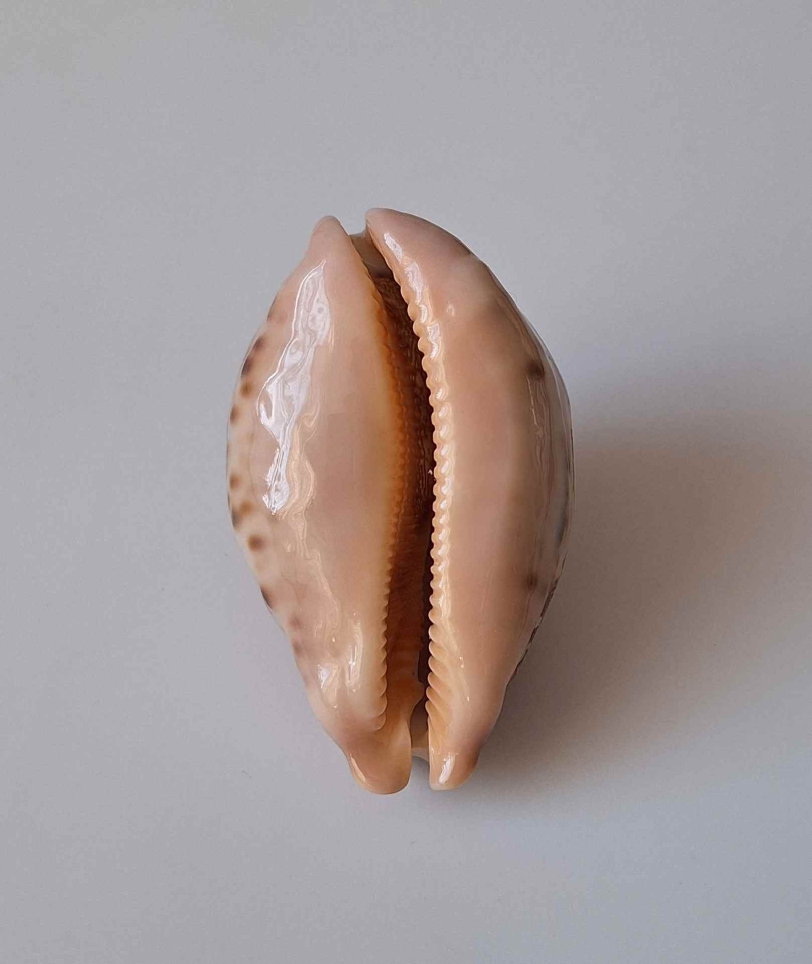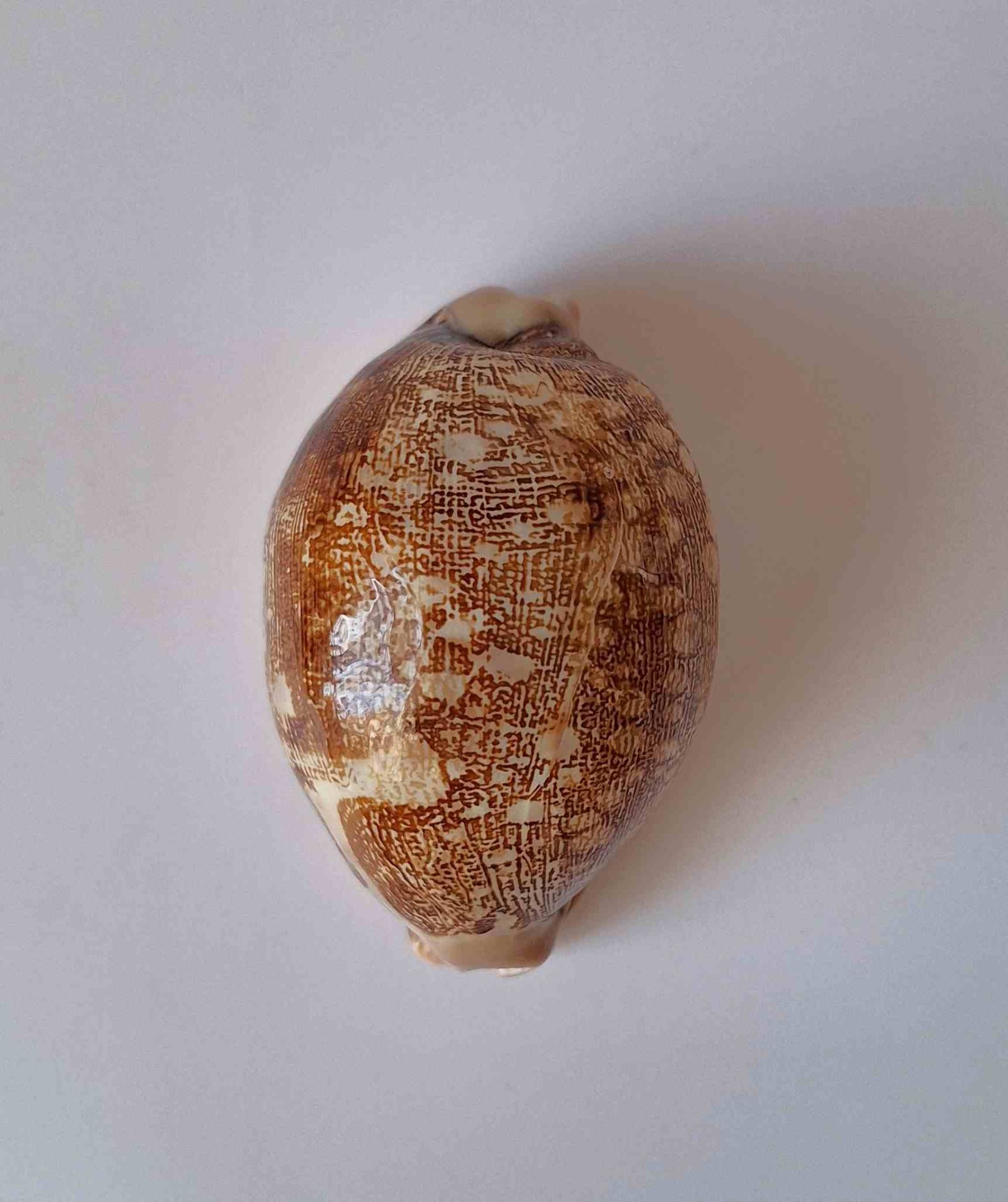 • krásný barevný kus, perfektní vzor, zhojená jizva na vrchní straně, drobné štípnutí na špičce, vyloveno v hloubce 5 metrů (beautiful colored piece, perfect pattern, healed scar on dorsum, minor chip on apex, taken by diving at a depth of 5 meters)
