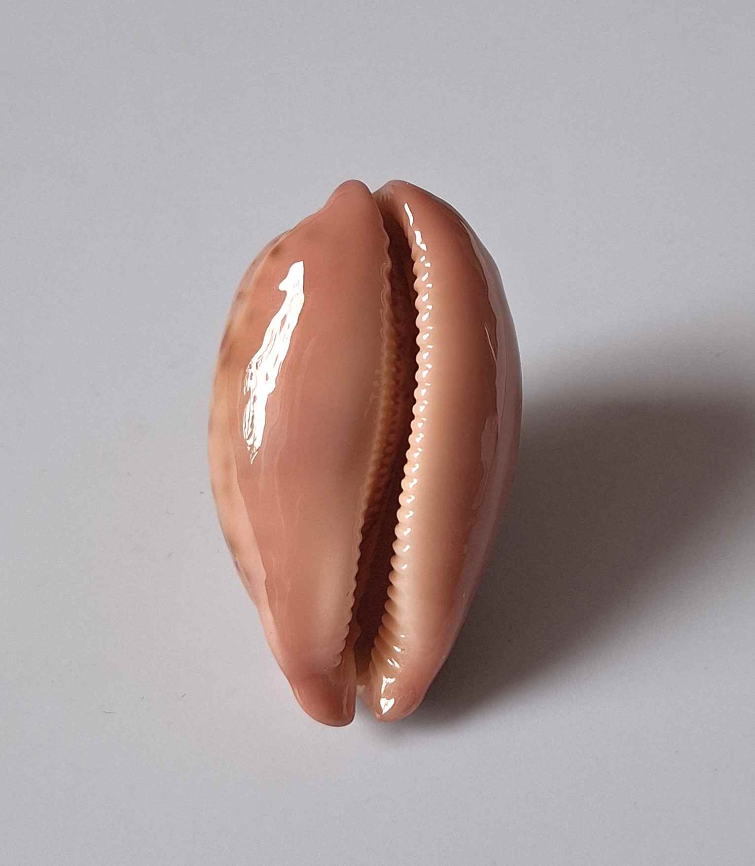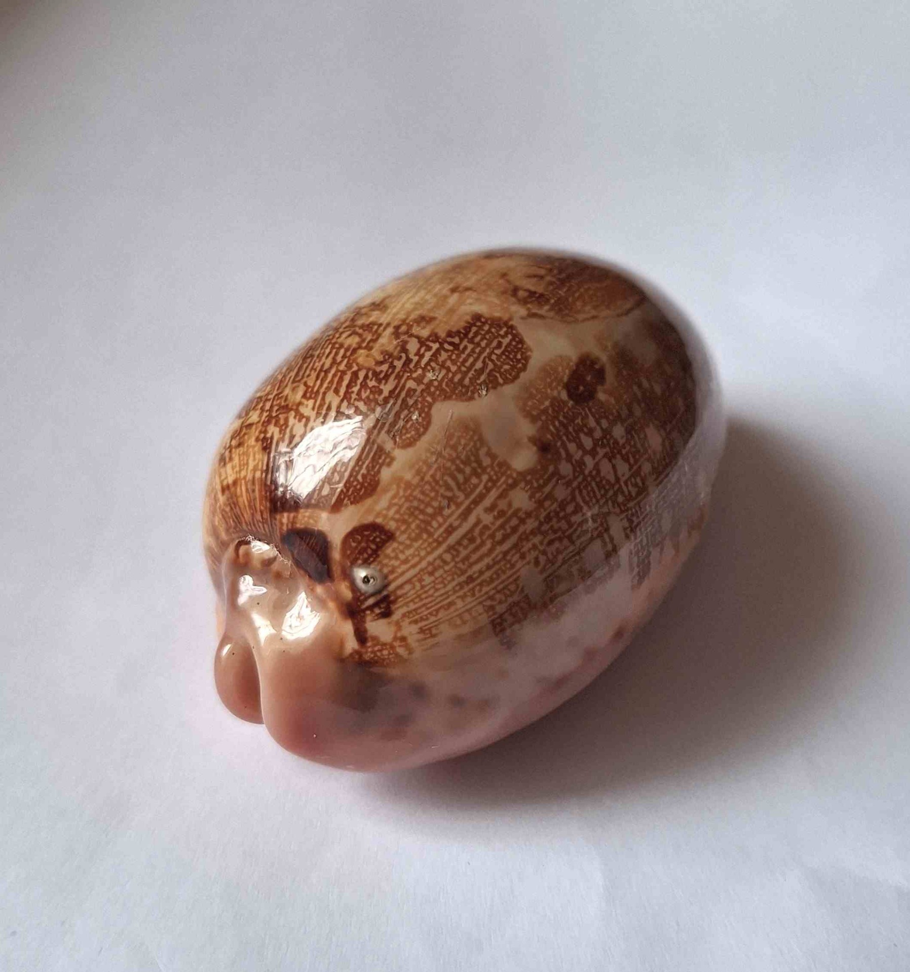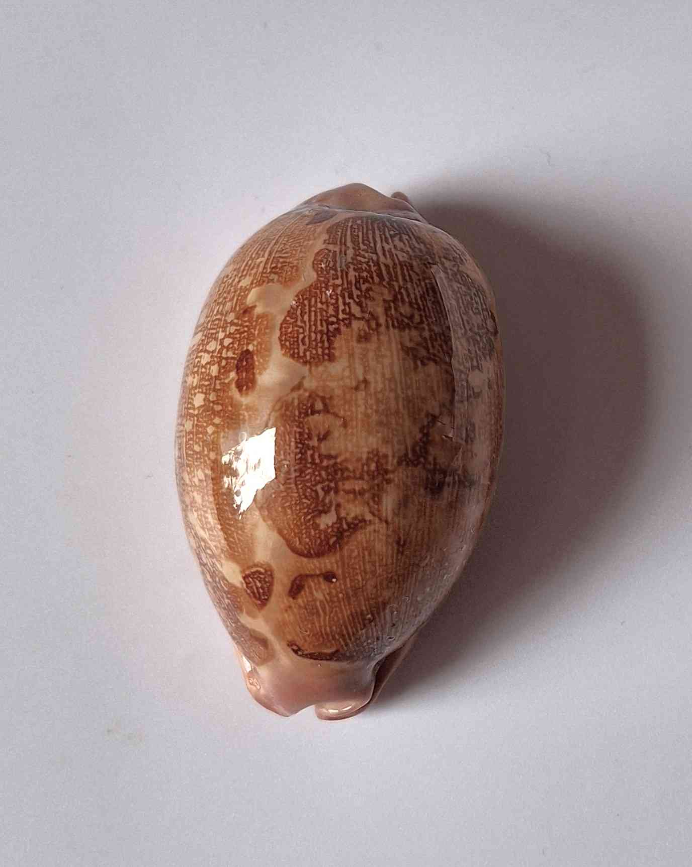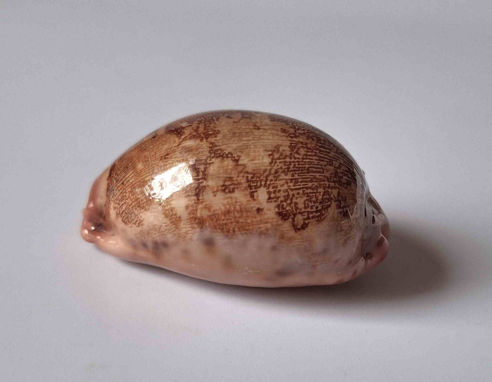 • krásný barevný kus, pěkný vzor, na spodní straně lehce narůžovělý, drobné zrnko písku na horní straně, vyloveno v hloubce 5 metrů (beautiful colored piece, nice pattern, slightly pinkish on base, little grains of sand on dorsum, taken by diving at a depth of 5 meters)