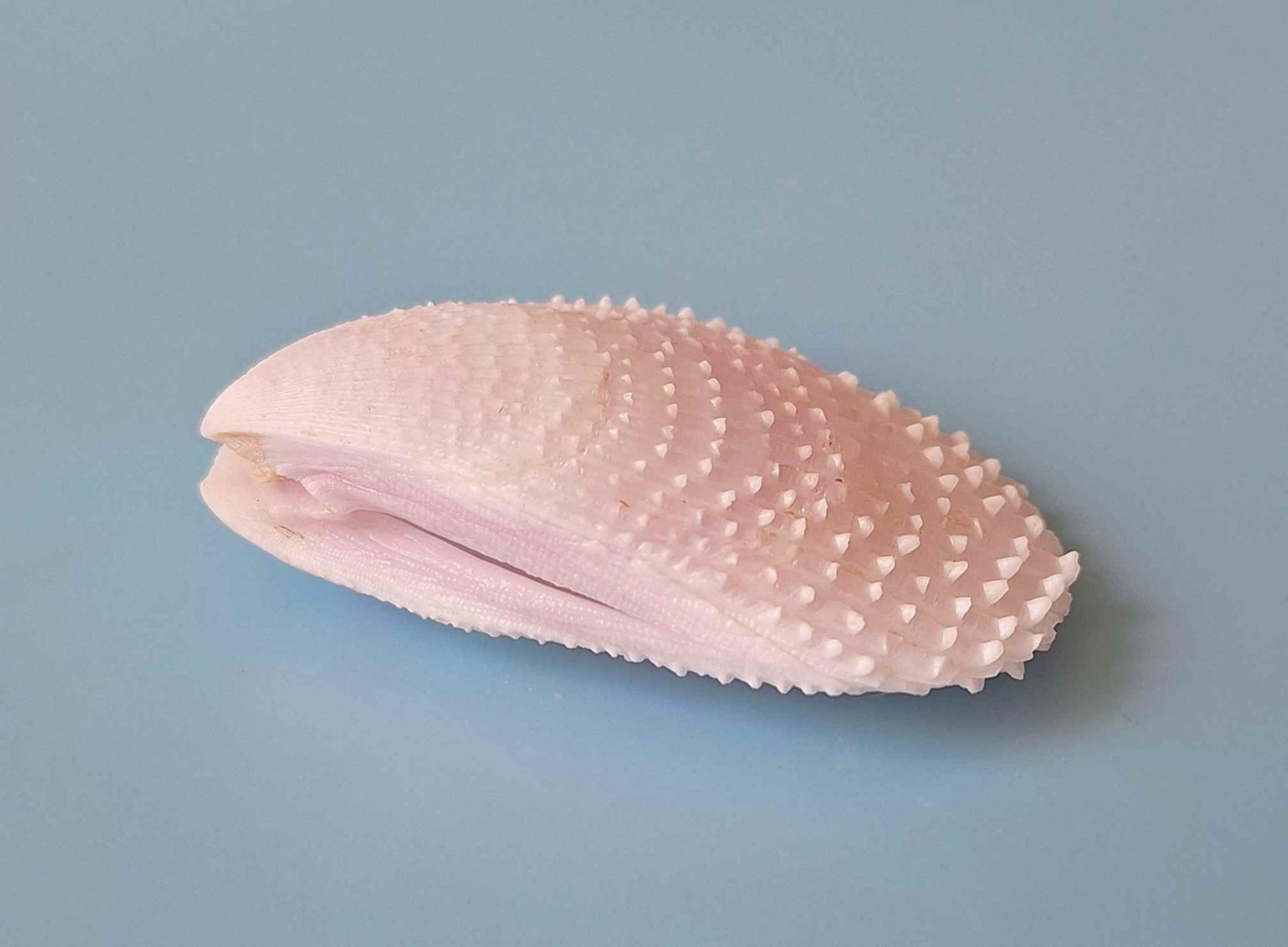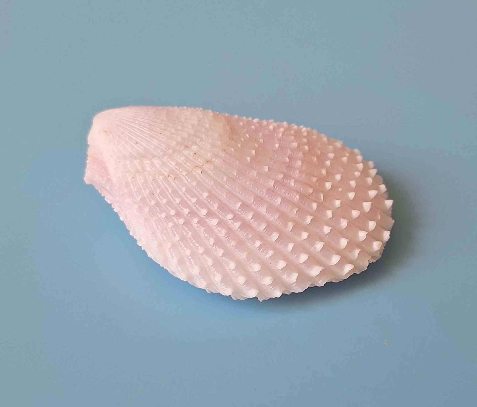 • moc hezký kus, drobné nedokonalosti, bílá s fialovým nádechem, patří do family LIMIDAE (very nice piece, minor imperfections, white color with hint of purple)