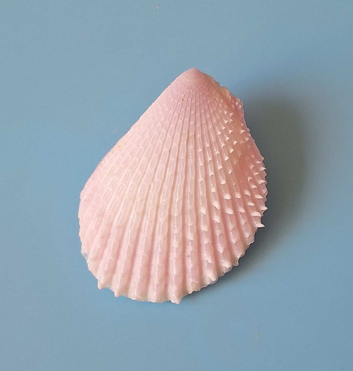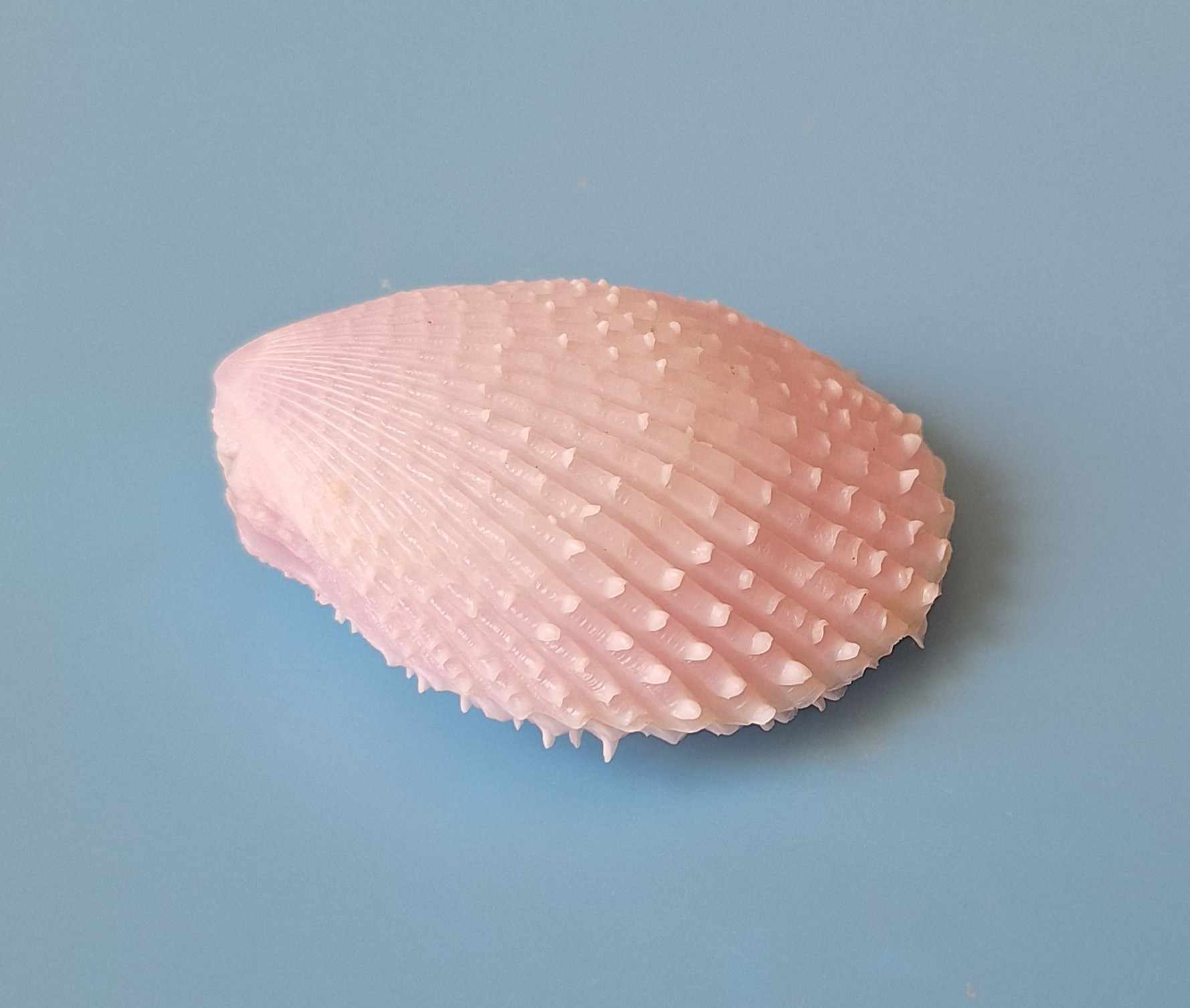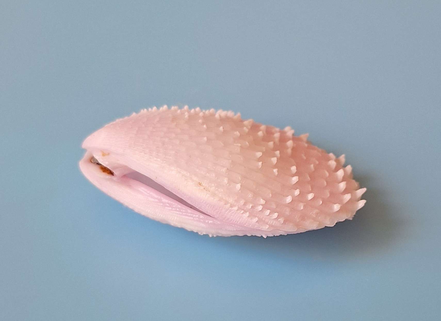 • moc hezký kus, drobné nedokonalosti, drobné štípnutí na okraji, bílá s fialovým nádechem, patří do family LIMIDAE (very nice piece, minor imperfections, some minor chips on lip, white color with hint of purple)