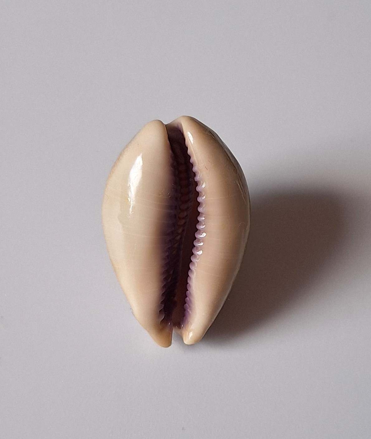 • hezký kus, světle fialové pruhy na boku, fialová uvnitř okraje, zhojená jizva, menší poškození na vrchní straně, vyloven místními rybáři v hloubce 3 metrů (nice piece, light purple stripe on side, purple on the inside lips, healed scar, minor damage on dorsum, taken by local fishermen by diving at a depth of 3 meters)