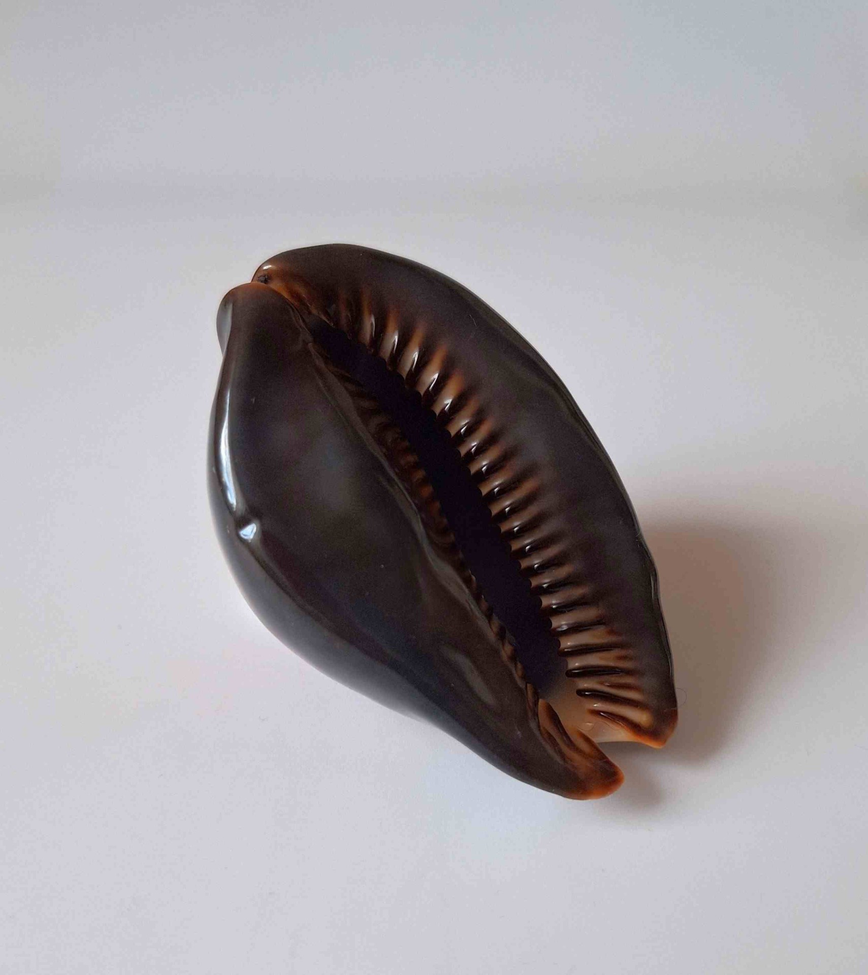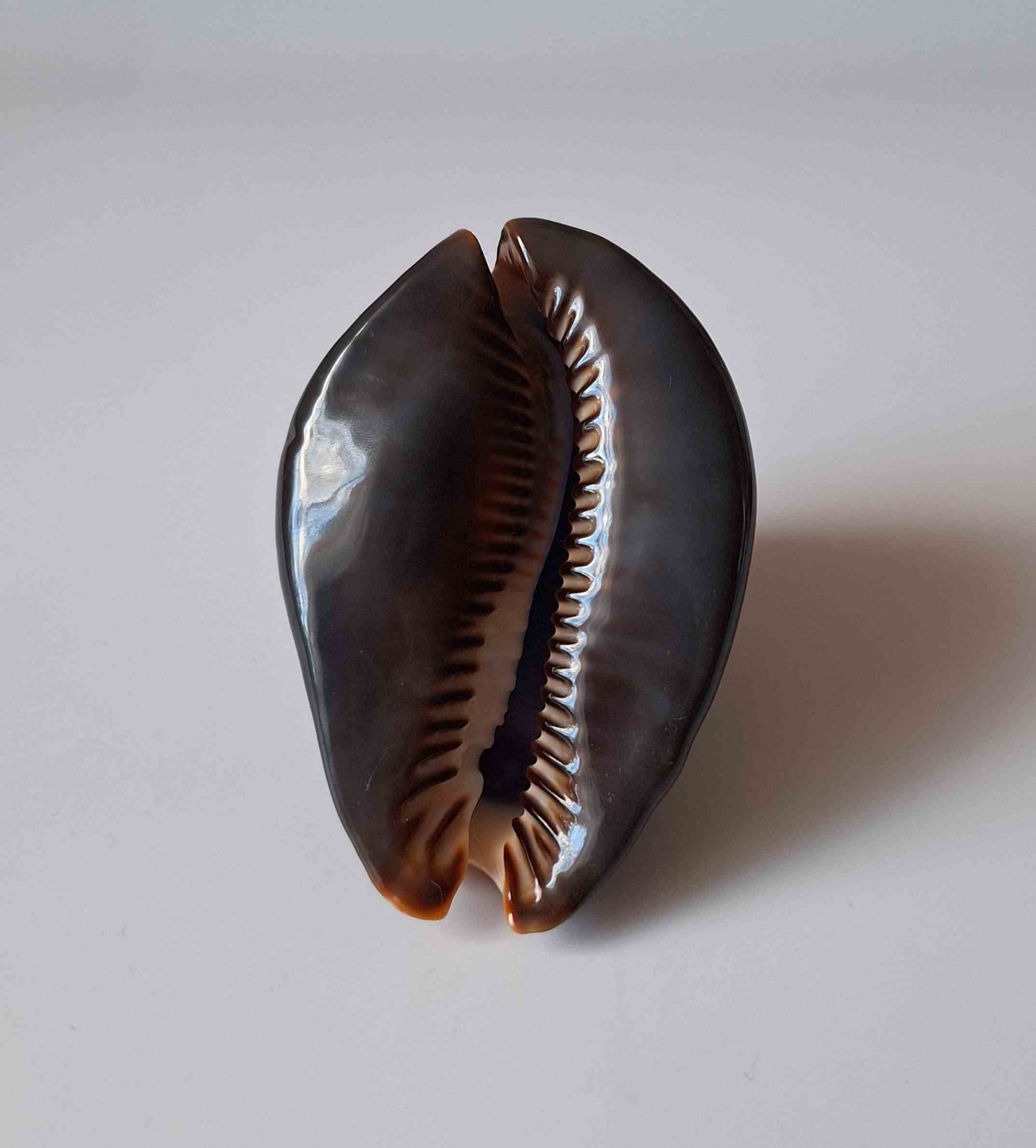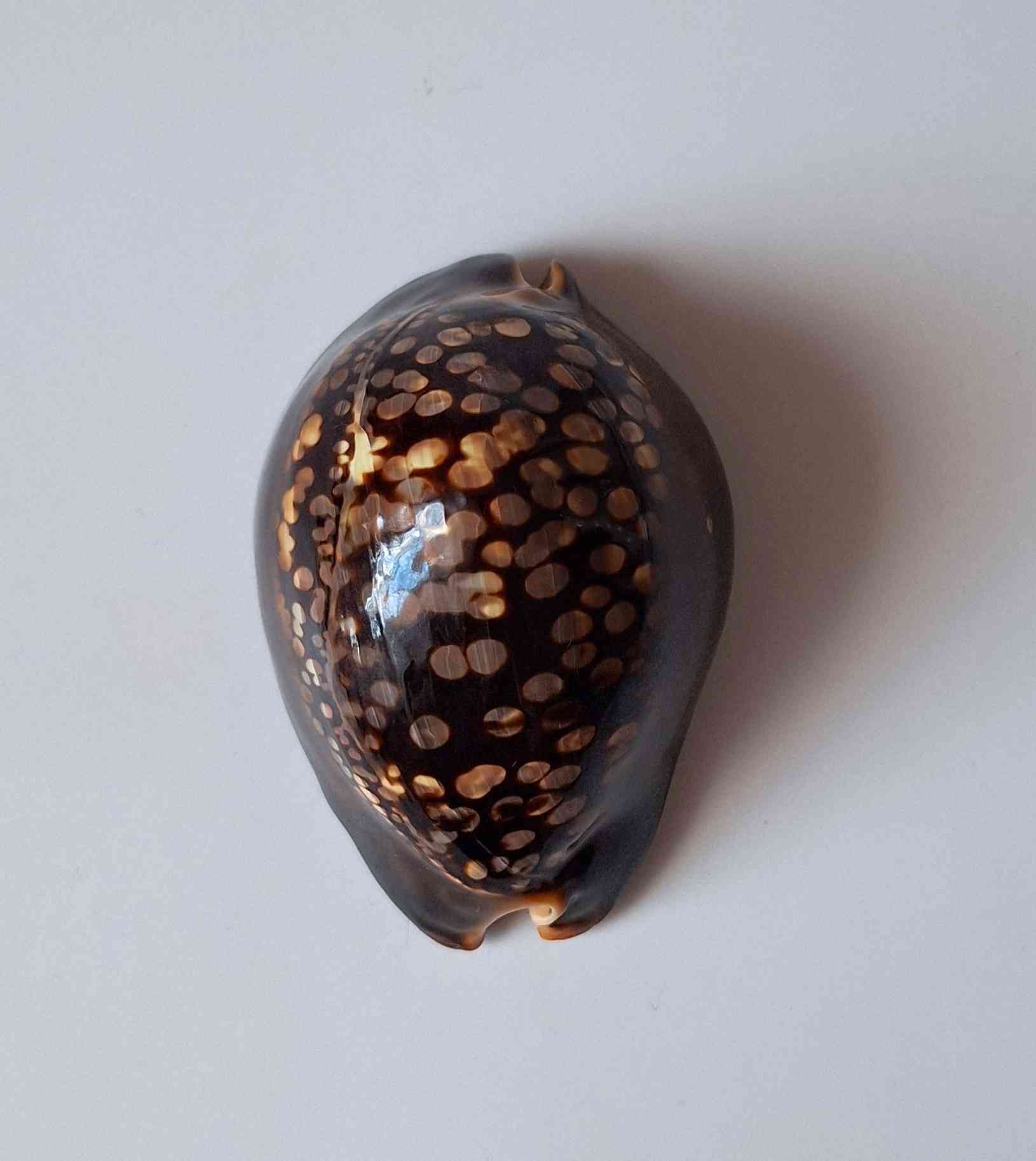 • krásný velký exemplář, krásná tmavá barva, nádherný vzor, zhojená jizva na horní straně, nějaké nedokonalosti na těle, vyloven v hloubce 20 metrů (beautiful big specimen, nice dark color, beautiful pattern, healed scar on dorsum, some imperfections on the body, taken by diving at a depth of 20 meters)