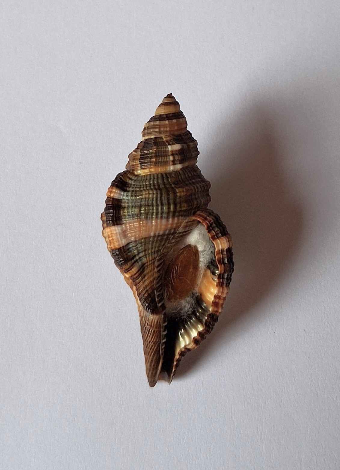 • nádherný tmavý kus s víčkem, krásná barva, různé odstíny, vyloven v hloubce 5 metrů (beautiful dark piece with operculum, TOP color, different shades, taken by diving at a depth of 5 meters)