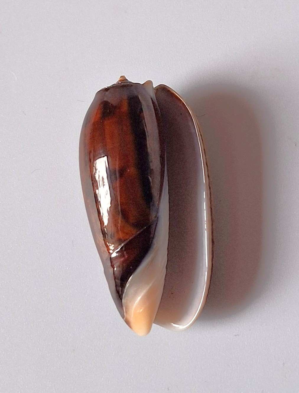 • velmi hezký kus, tmavá barva, vyloven v hloubce 2 metrů (very nice piece,  dark color, taken by local fisherman by diving at a depth of 2 meters)