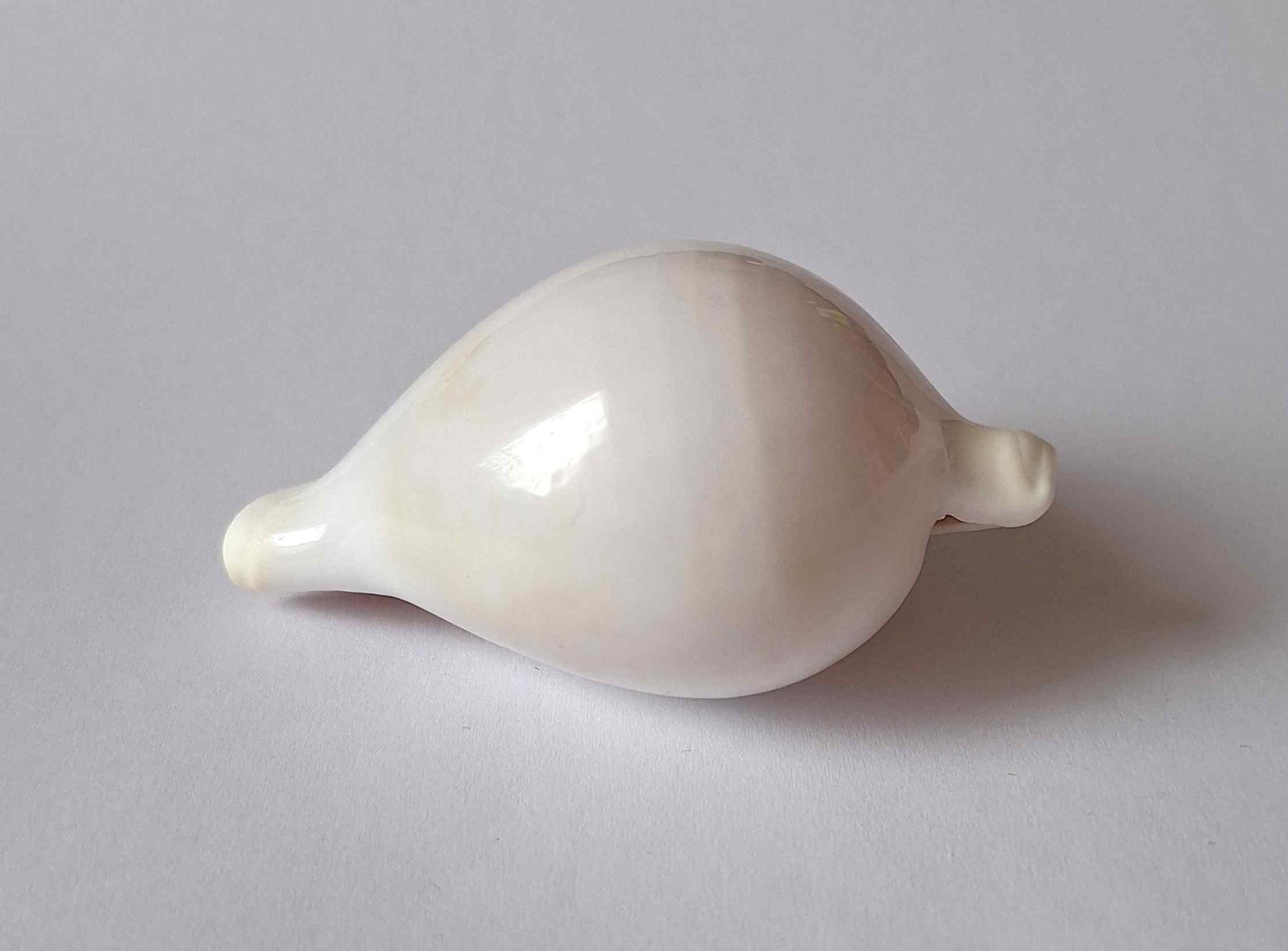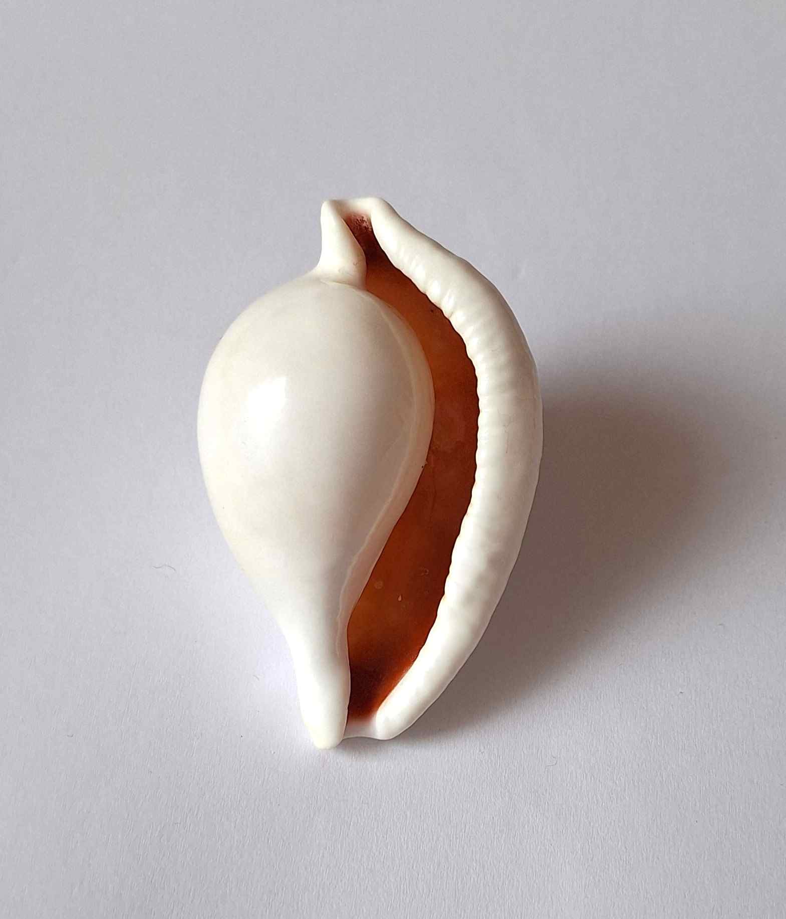 • nádherný kus, bílá barva, drobné nedokonalosti na vrchní straně, uvnitř hnědá barva, neběžná lokalita, patří do family OVULIDAE (beautiful piece, white color, minor imperfections on dorsum, inside brown color, uncommon locality)
