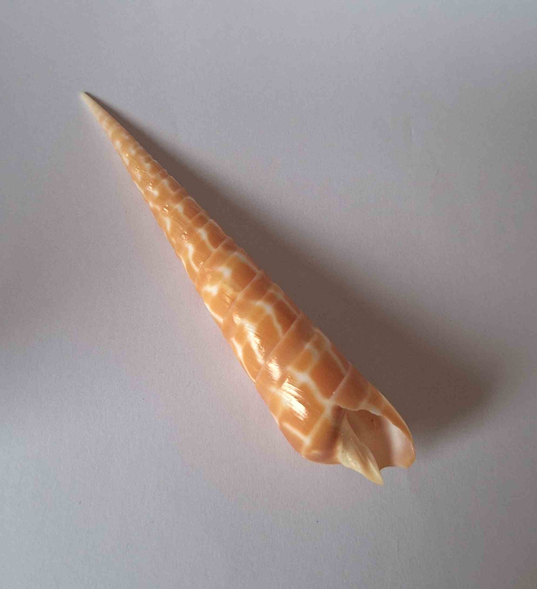 • moc hezký kus, krásná oranžová barva, drobné štípnutí na okraji a špičce (very nice piece, beautiful orange color, minor chip on lip and apex)