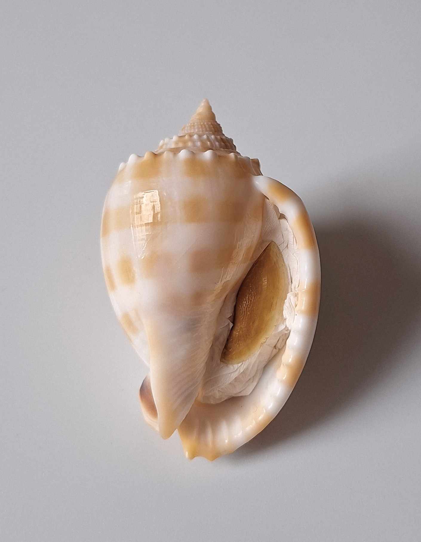 • hezký kus s víčkem, light color, hezký vzor, vyloven v hloubce 5 metrů (nice piece with operculum, light color, nice pattern, taken by diving at a depth of 5 meters)