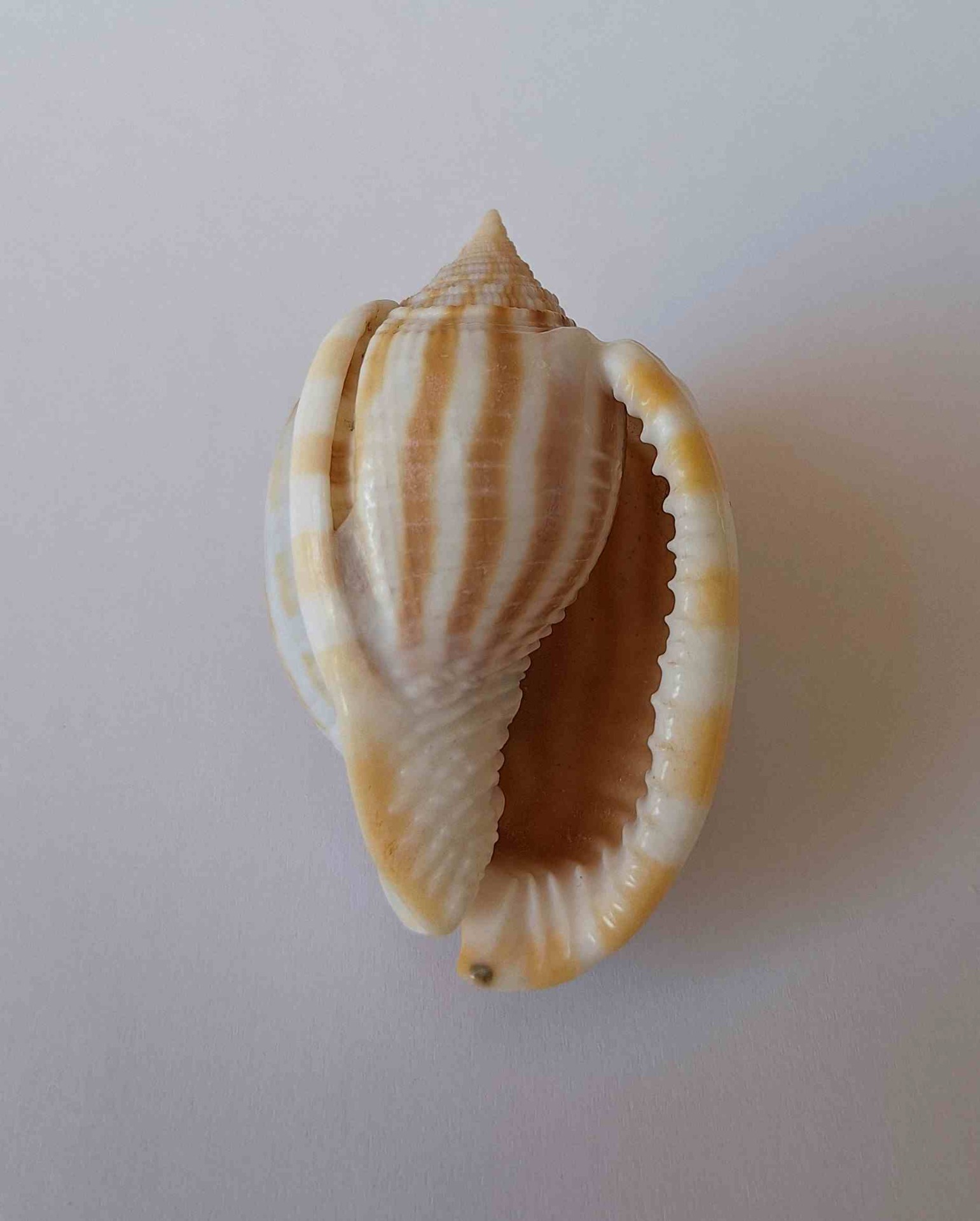 • moc hezký kus, hezký vzor, vzácný, zrníčko písku na kanálku, vyloven vlečnou sítí v hloubce 40 až 50 metrů (nice colored piece, nice pattern, rare, sand of grain on canal, trawled at 40 to 50 meters depth)