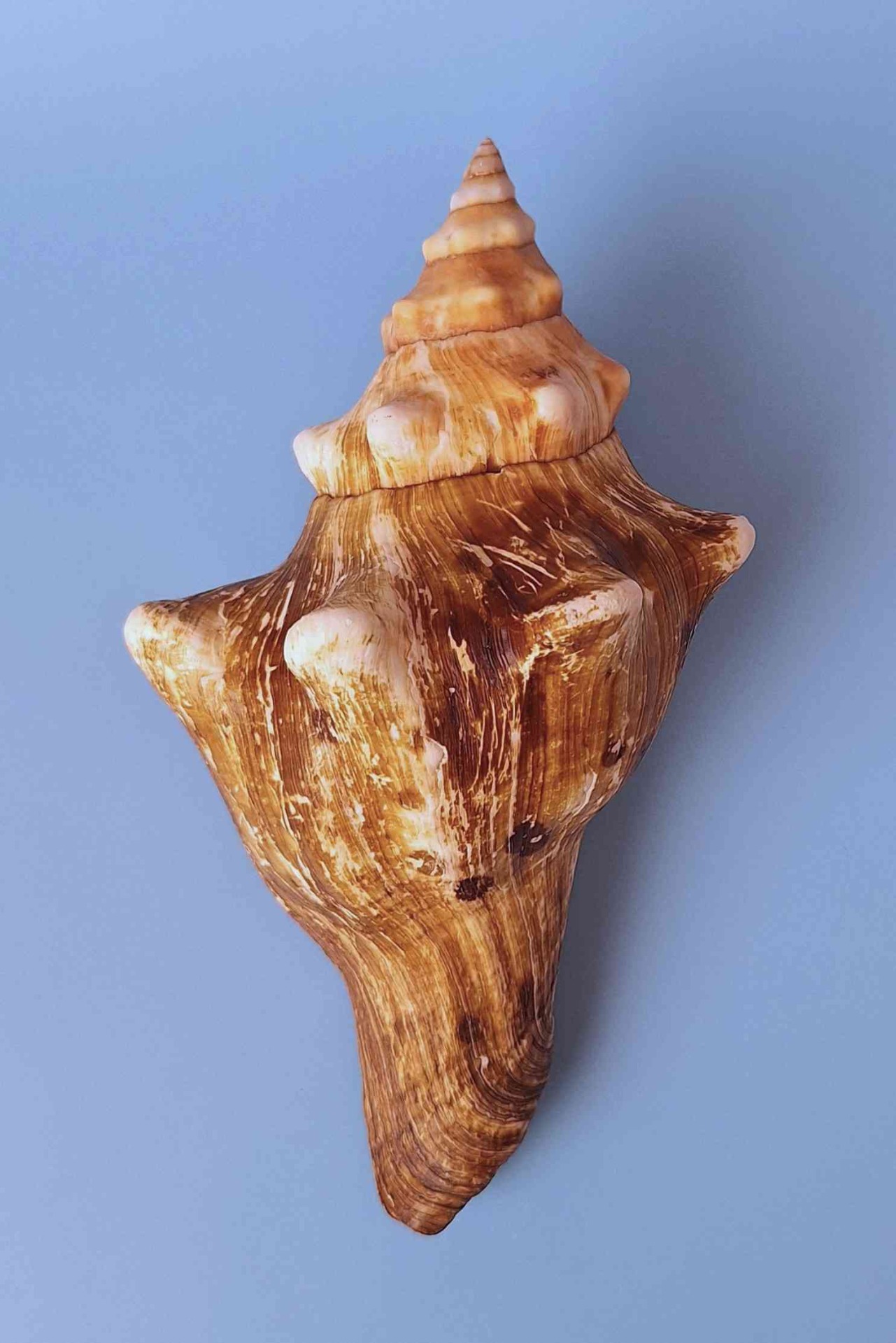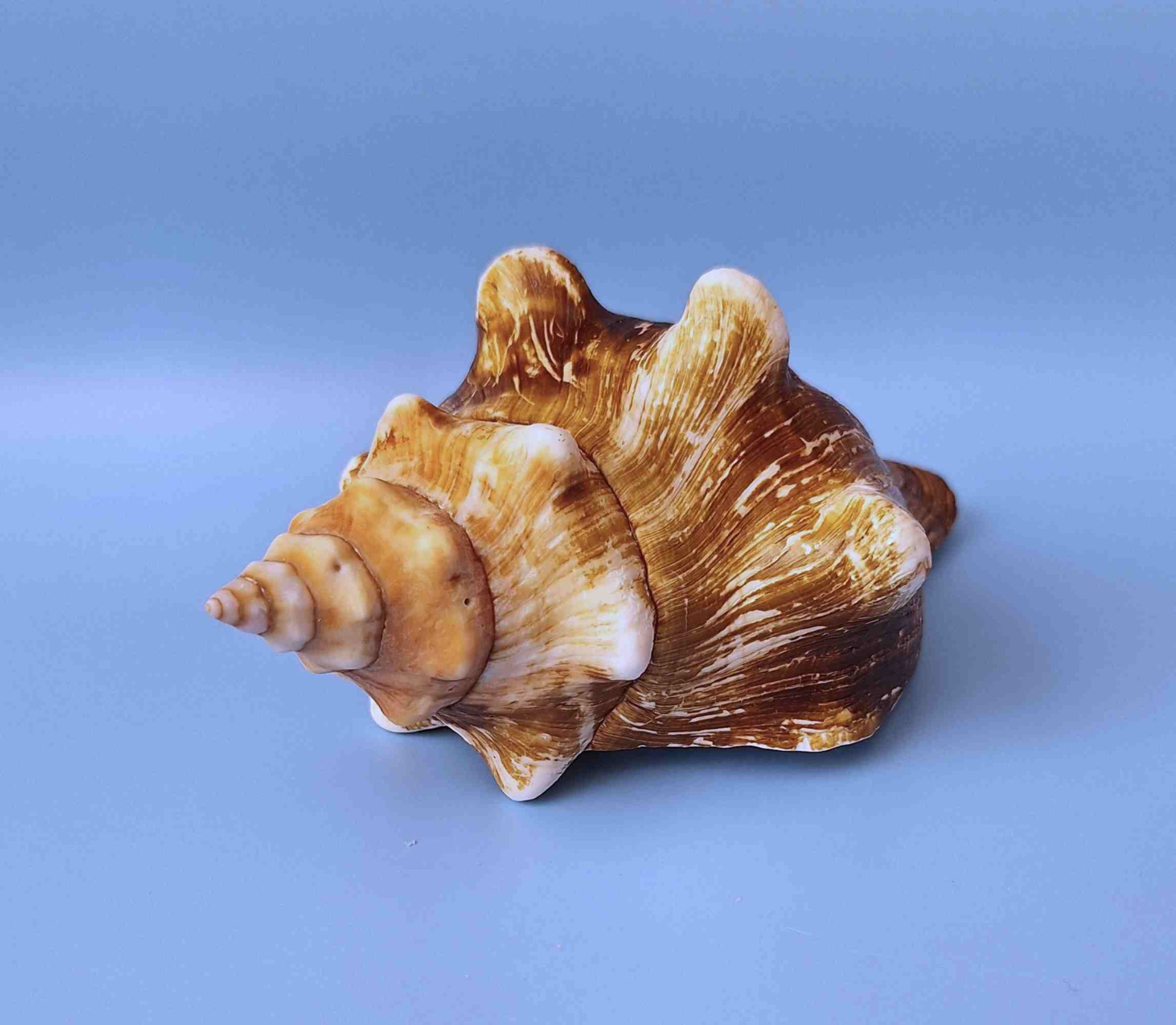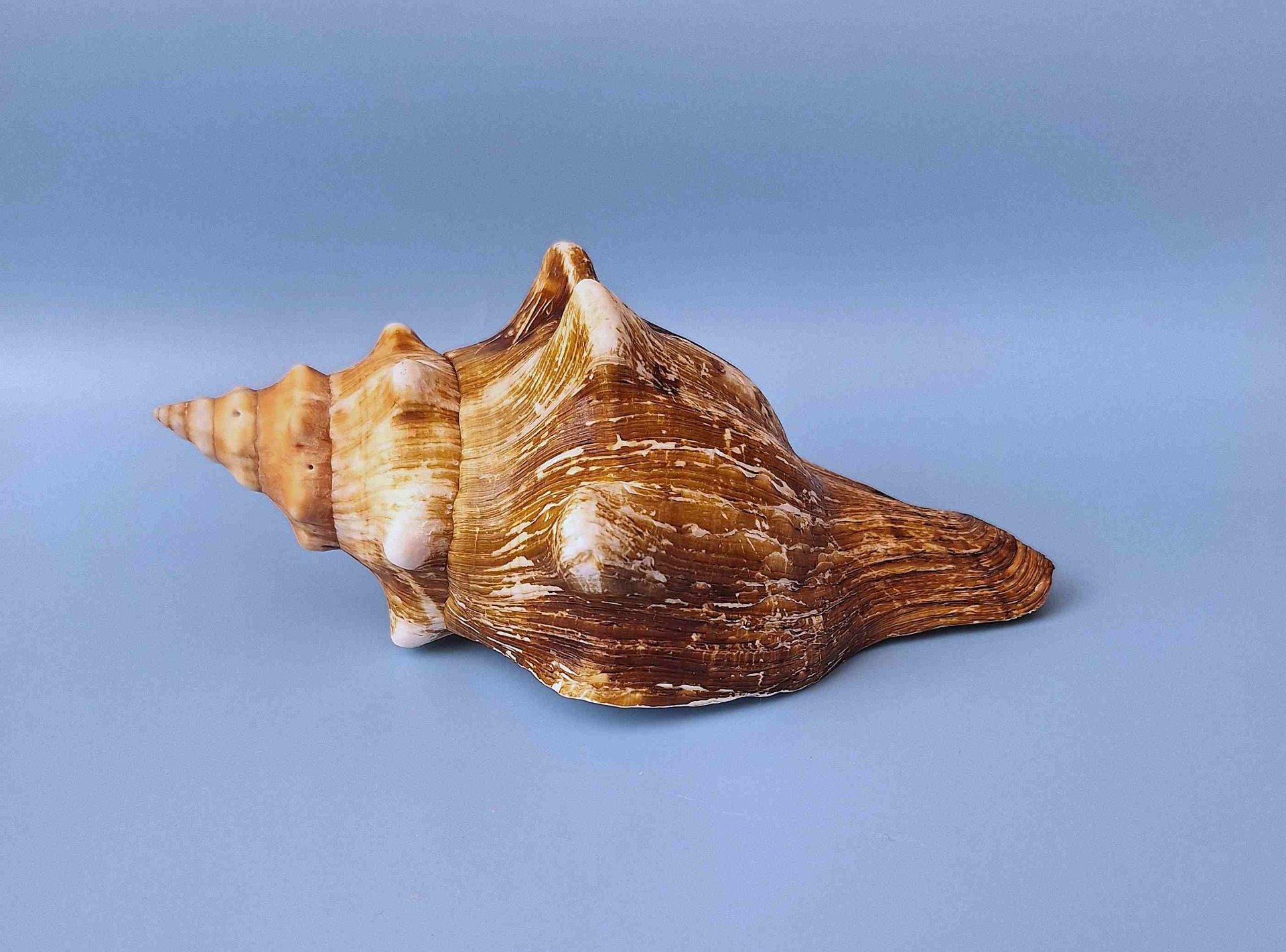 • velmi hezký těžký exemplář s víčkem, žádné příčné pruhy, dobrá kvalita na tento masivní kus, dvě malé dírky, okraj štípnutý (very nice heavy specimen with operculum, no transversal stripes, good quality for this massive shell, 2 small drillholes as usual, lip chipped)