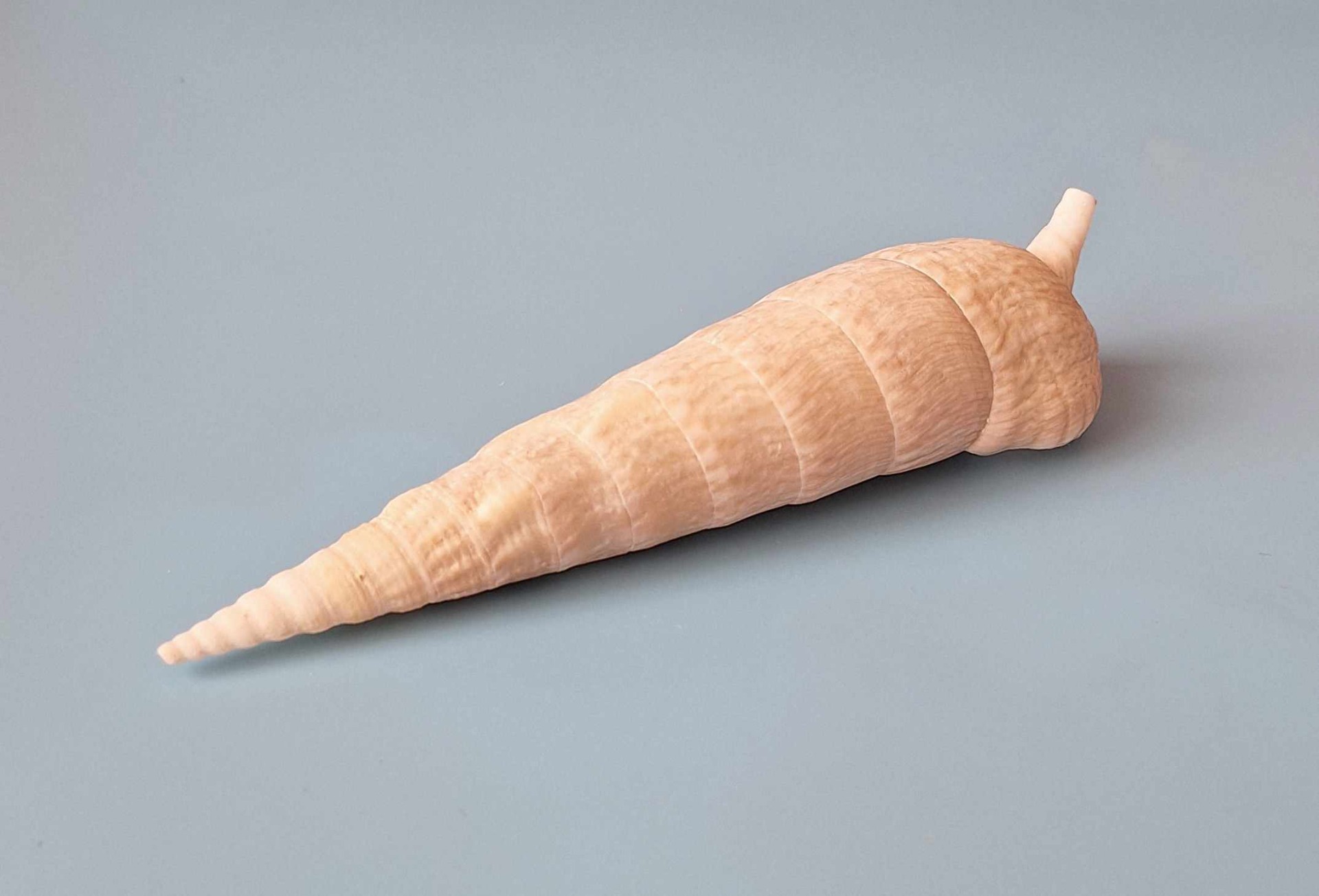 • hezký velký kus, krémová barva, špička poškozená, zhojená jizva, menší nedokonalosti (very nice big piece, cream color, apex damaged, healed scar, minor imperfections)