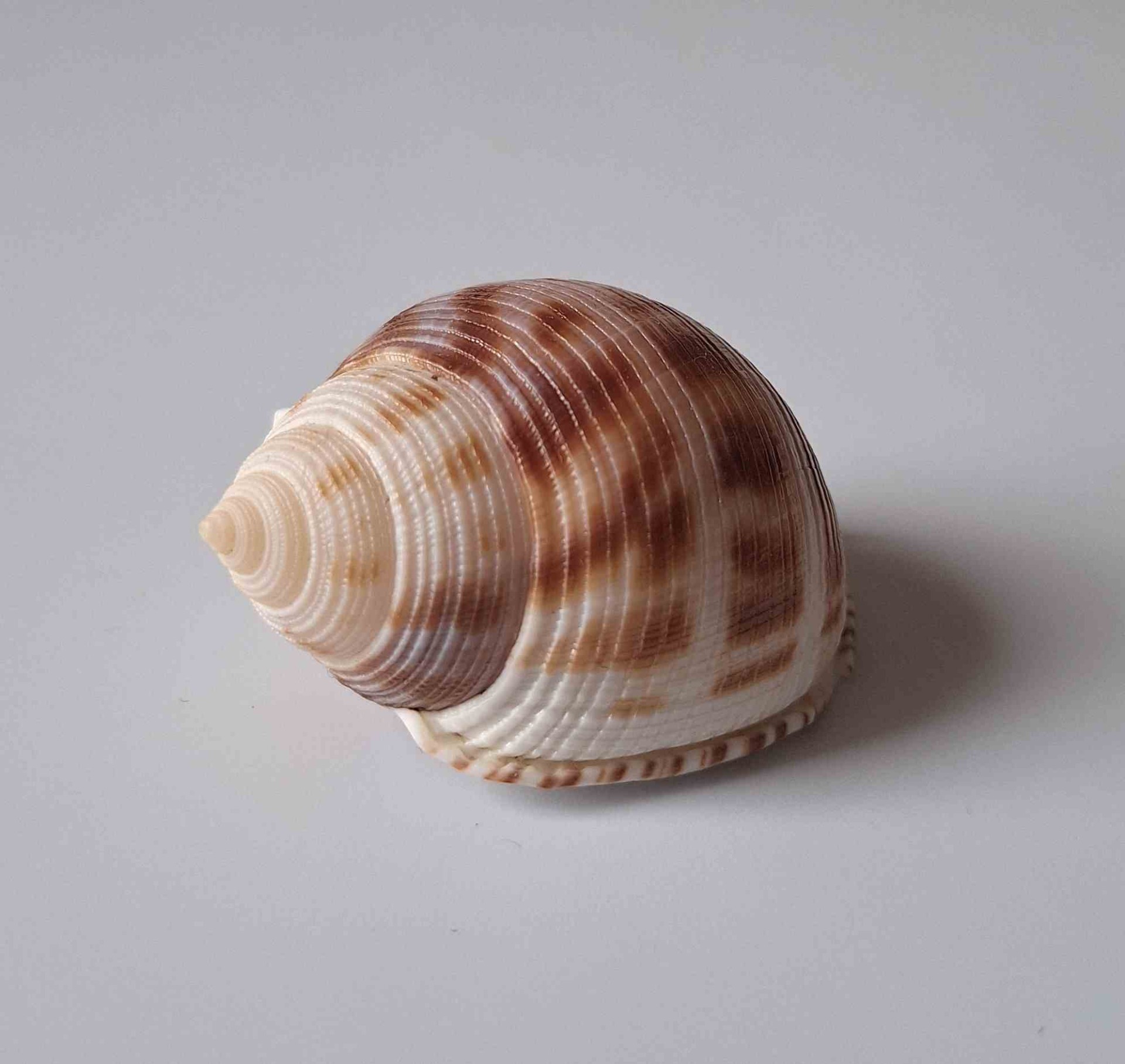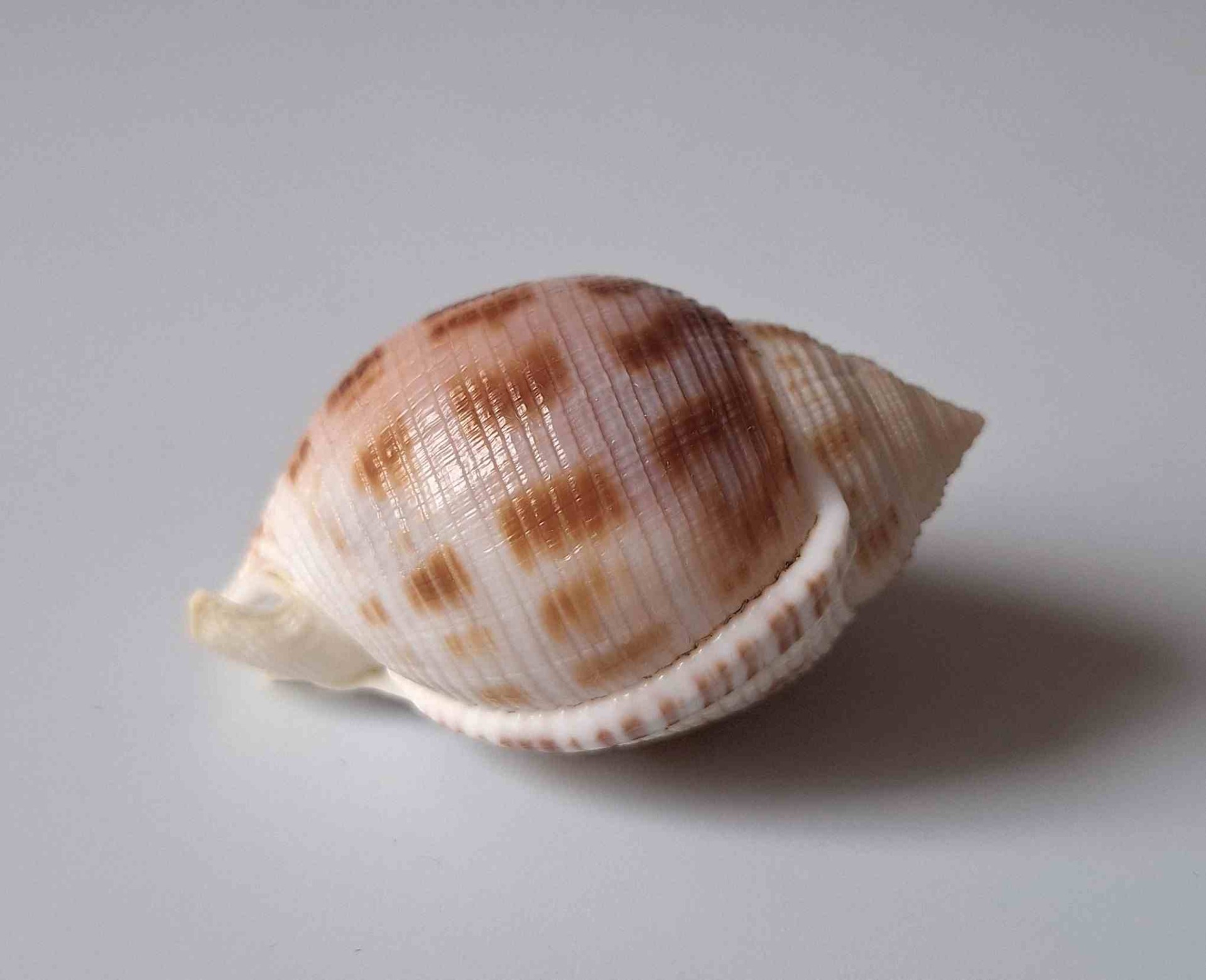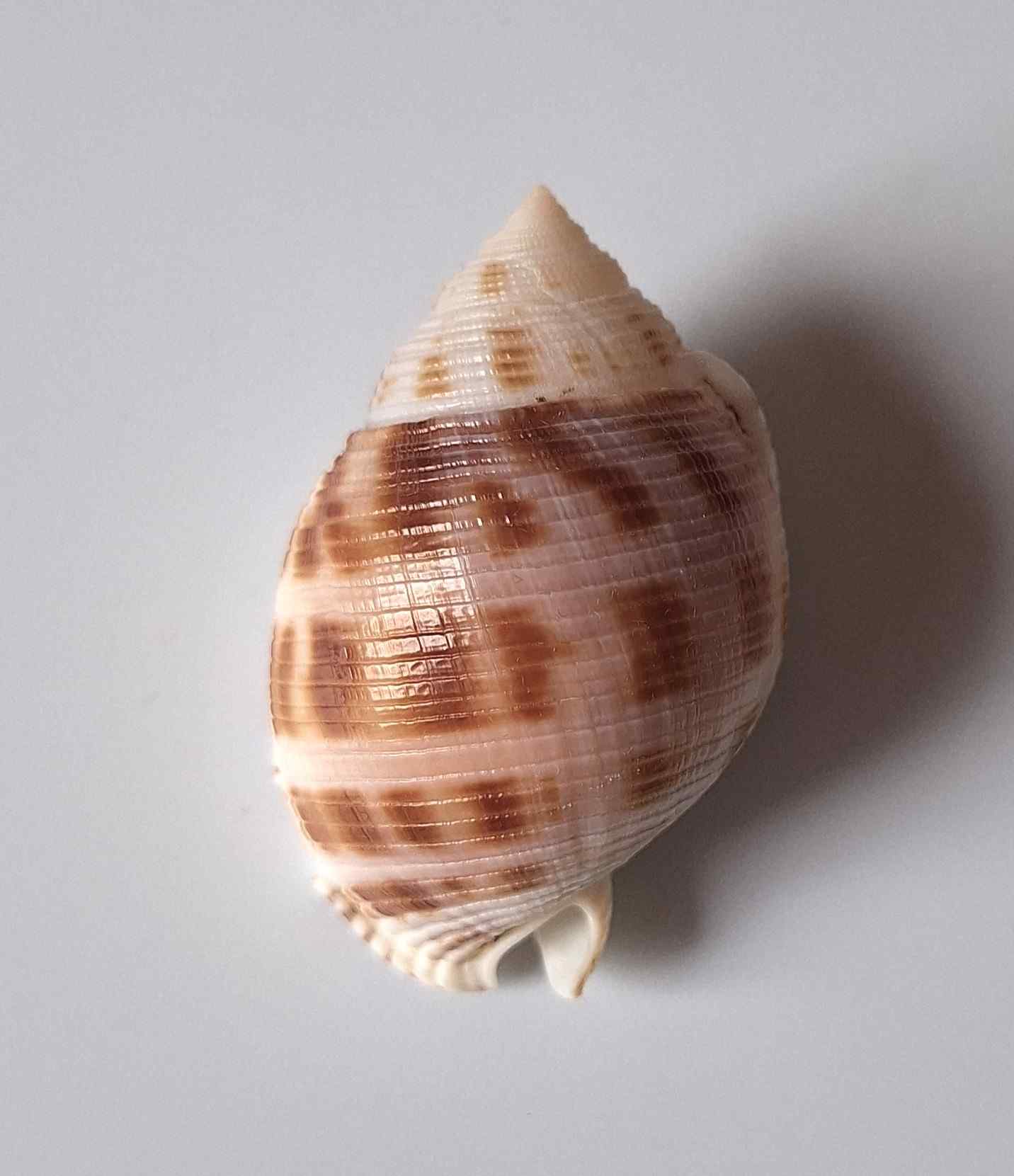 • hezký kus s víčkem, krásný vzor, větší štípnutí na okraji, štípnutý kanálek, vyloven vlečnou sítí v hloubce 120 m v písku (nice piece with operculum, beautiful pattern, bigger chip on lip, chipped canal, trawled at 120 meters deep on sand)