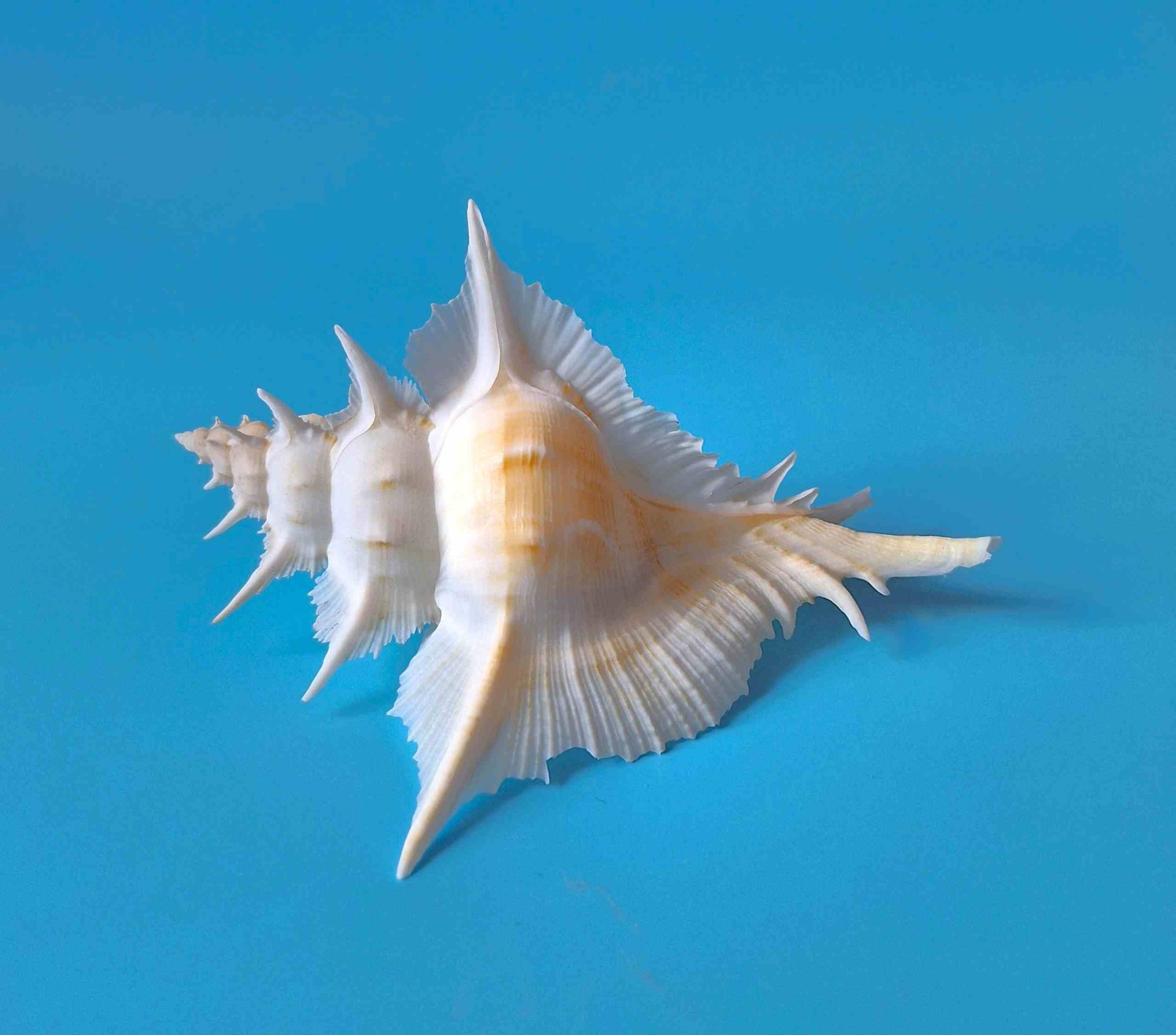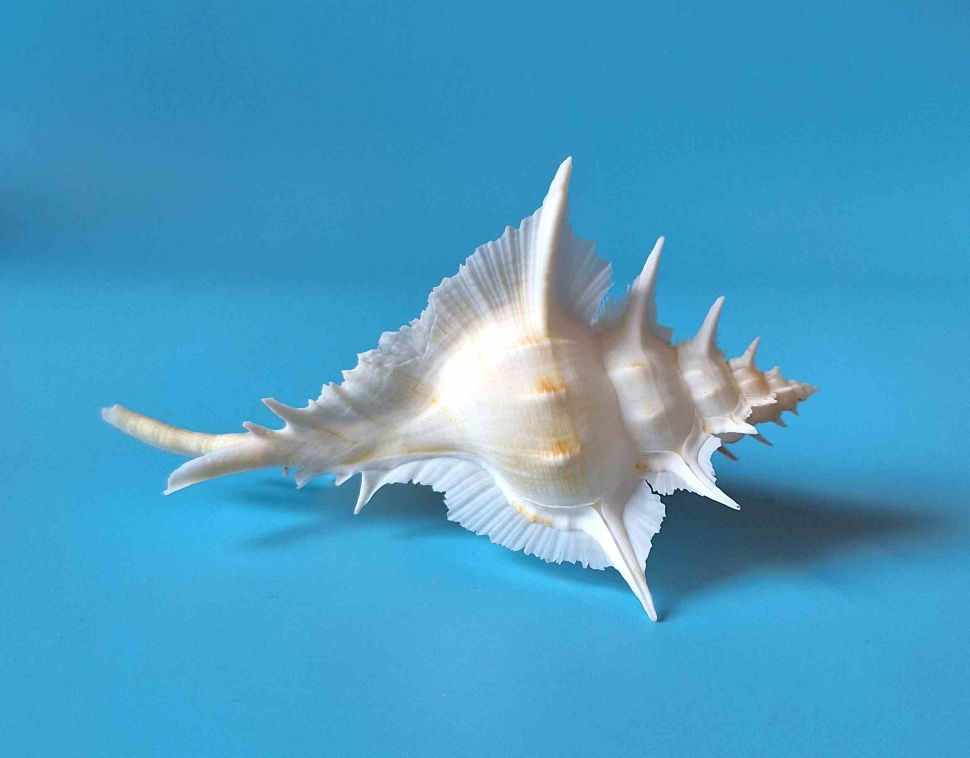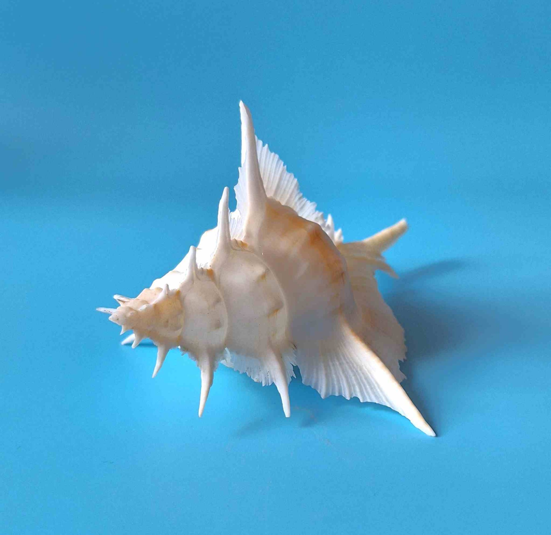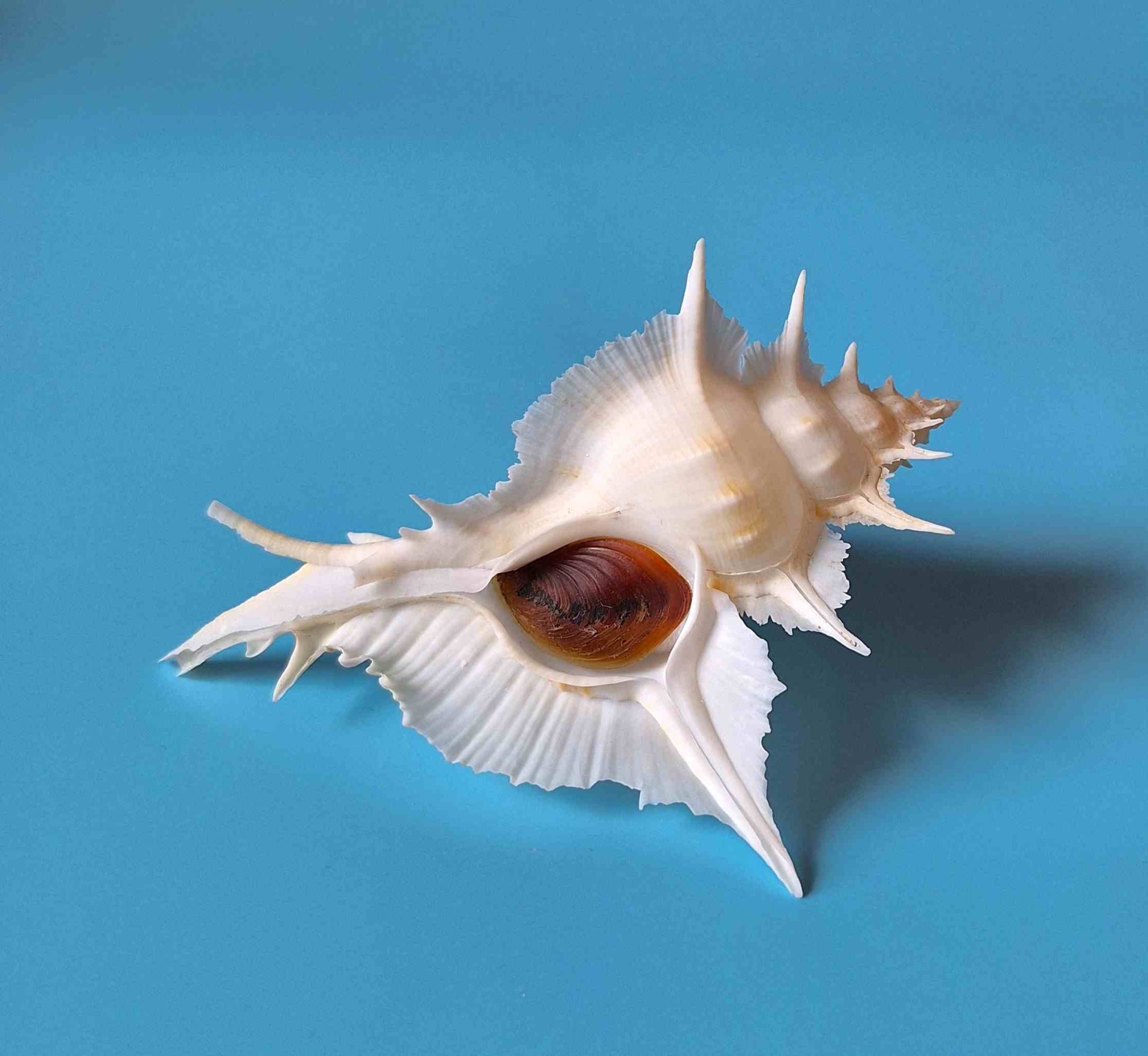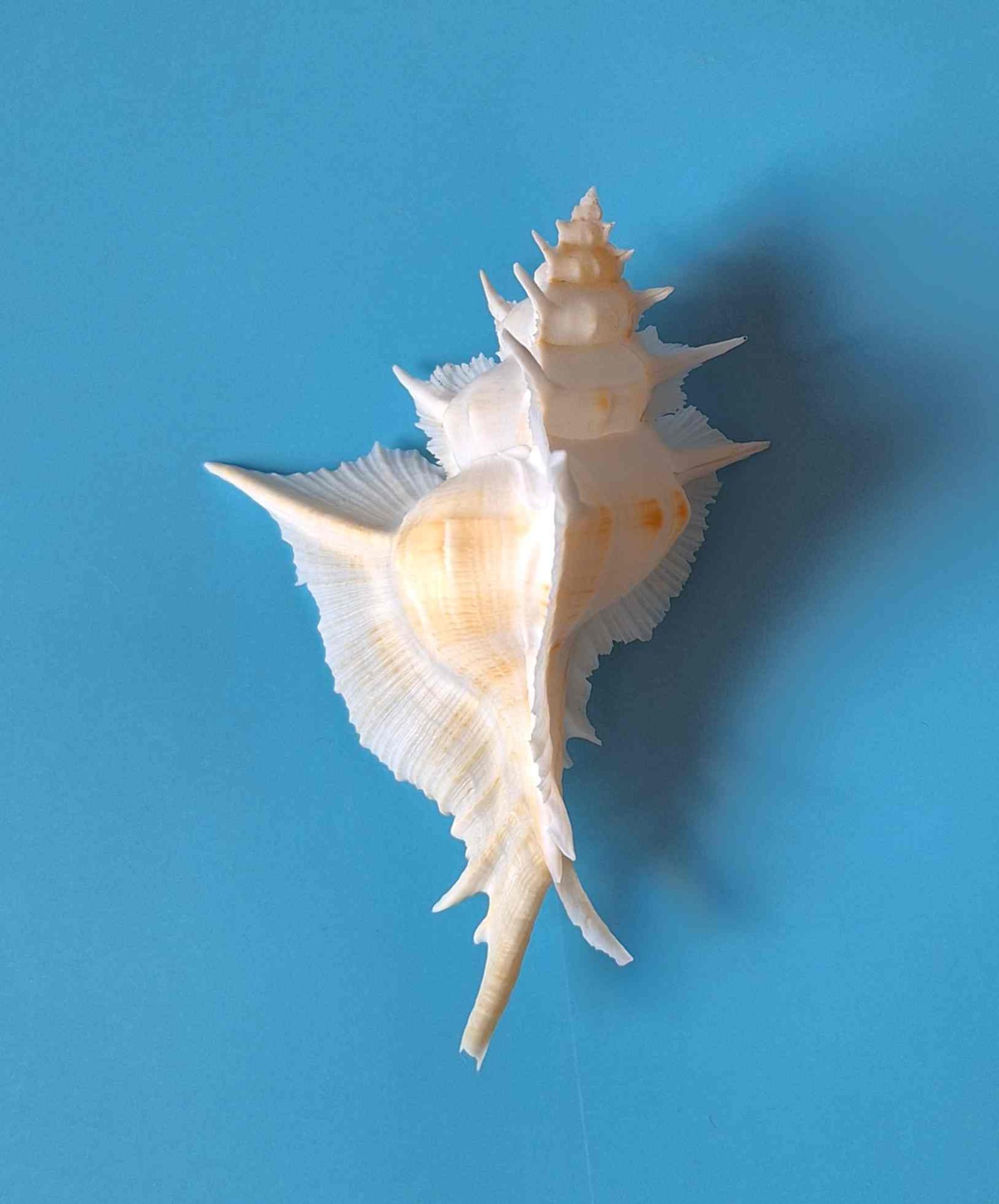 • překrásný exemplář s víčkem, bílá barva se žlutým nádechem, krásné ostny, drobná štípnutí na kanálku (beautiful specimen with operculum, white color with hint of yellow, very nice thorns, minor chips on canal)