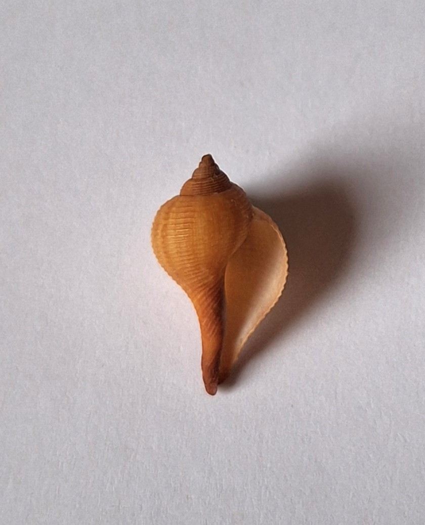 • malý exemplář, vzácný, oranžovo-hnědá barva, neběžný, větší štípnutí na okraji (small specimen, rare, orange-brown color, uncommon, bigger chip on lip)