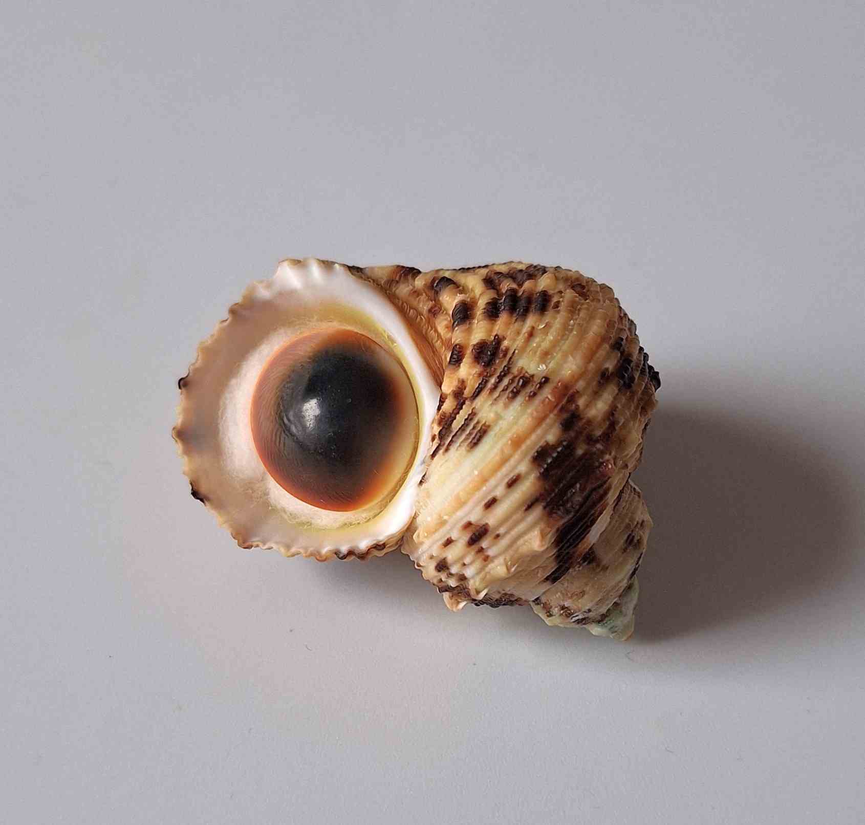 • hezký kus s víčkem, nasbírán z hloubky 10 až 30 metrů místním rybářem (nice piece with operculum, collected by local fisherman at a depth of 10 to 30 meters)