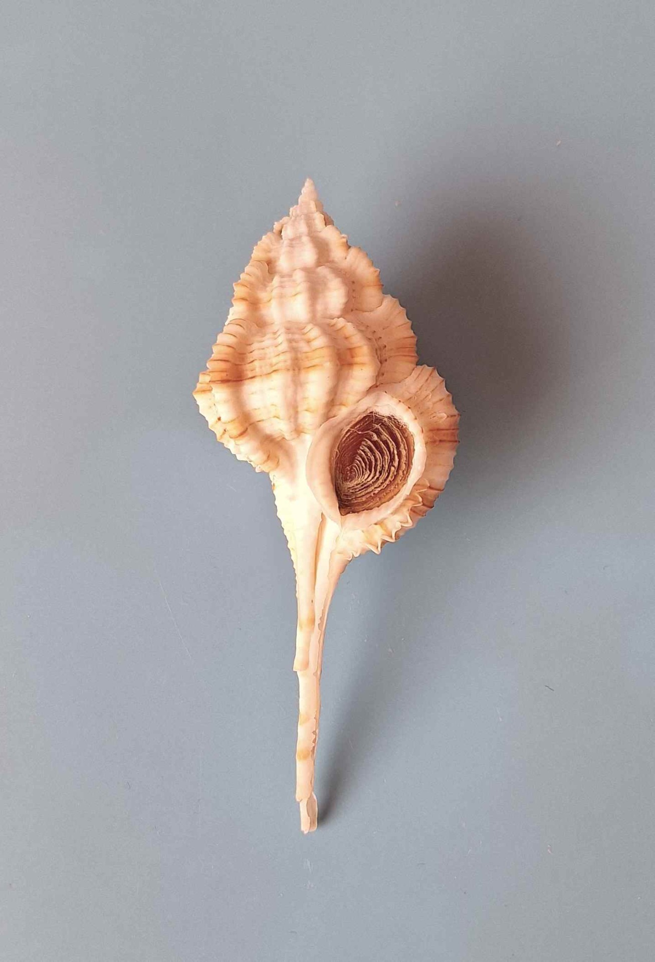 • moc hezký kus s víčkem, světlá hnědá barva, kanálek štípnutý, vyloven sítí místním rybářem (very nice piece with operculum, light brown color, canal chipped, by tangeld net from local fisherman)