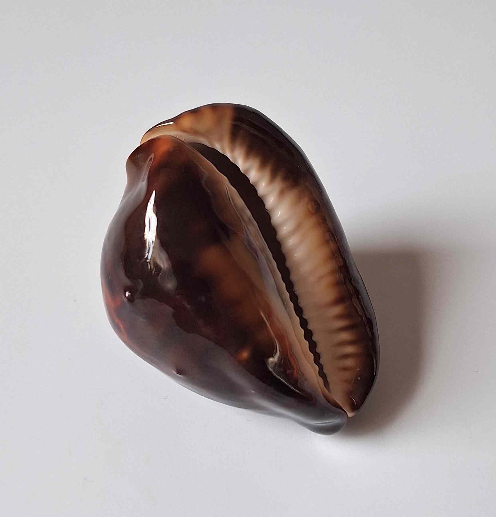 • krásný tmavý exemplář, nádherná barva i vzor, velmi dobrá kvalita, pouze dvě zrníčka písku na jednom boku (beautiful dark specimen, beautiful color and pattern, very good quality, only two grains of sand on one side)