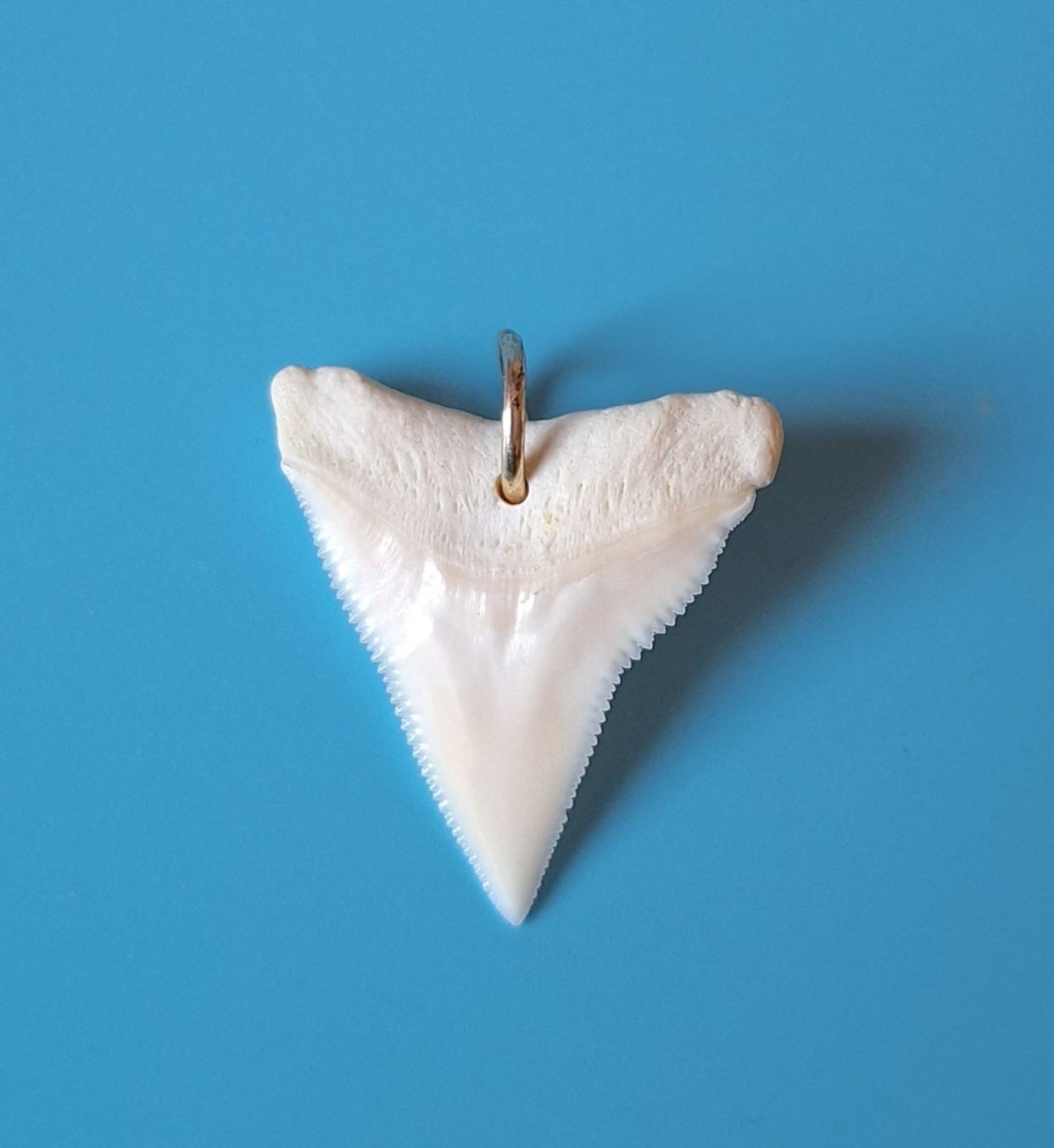 • zub žraloka BĚLAVÉHO - přívěšek, s koženým řemínkem